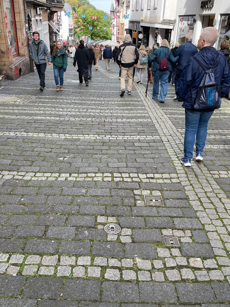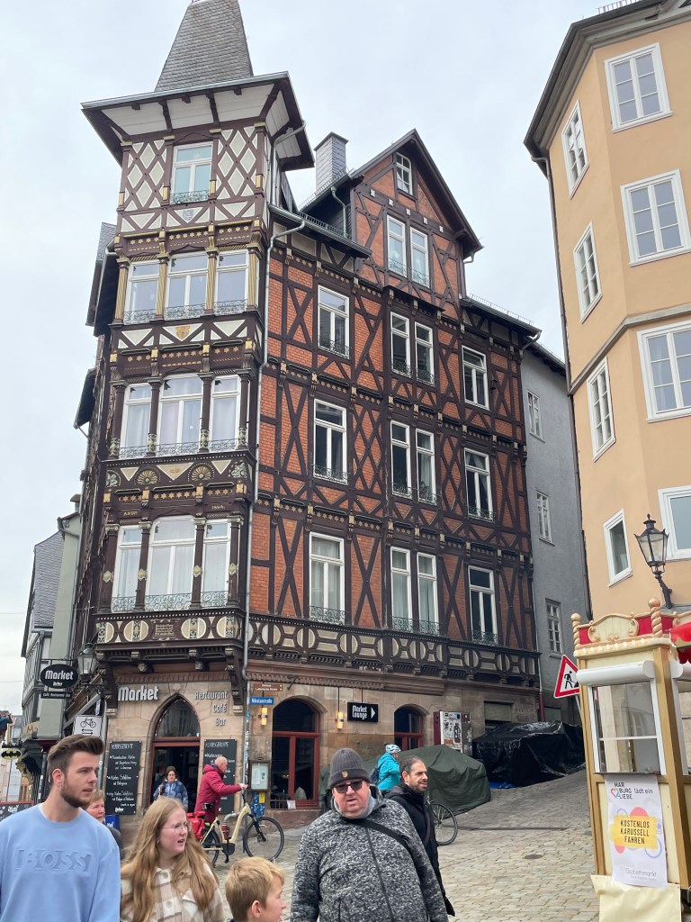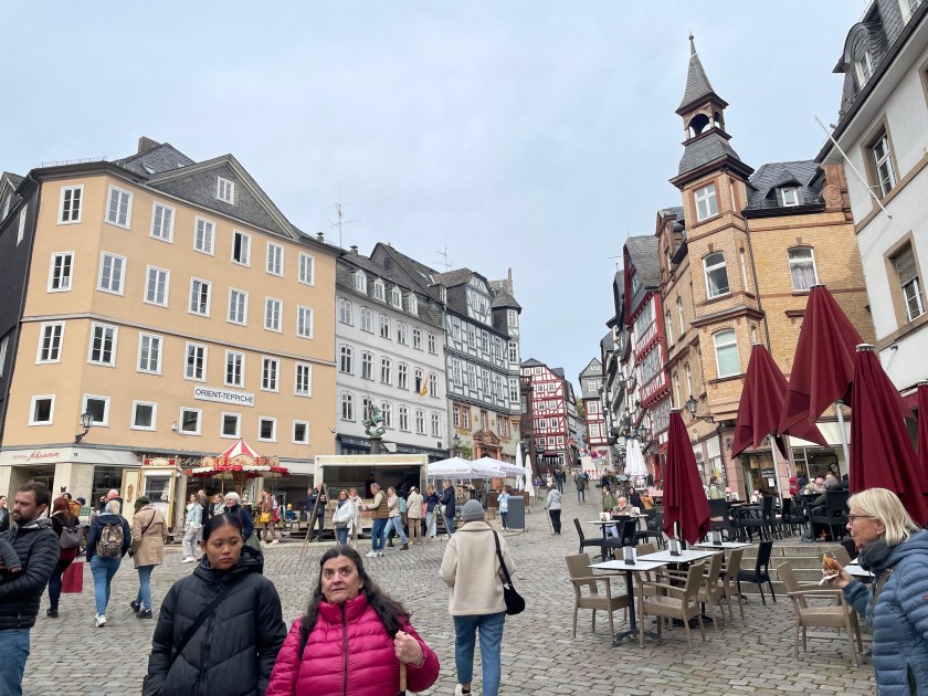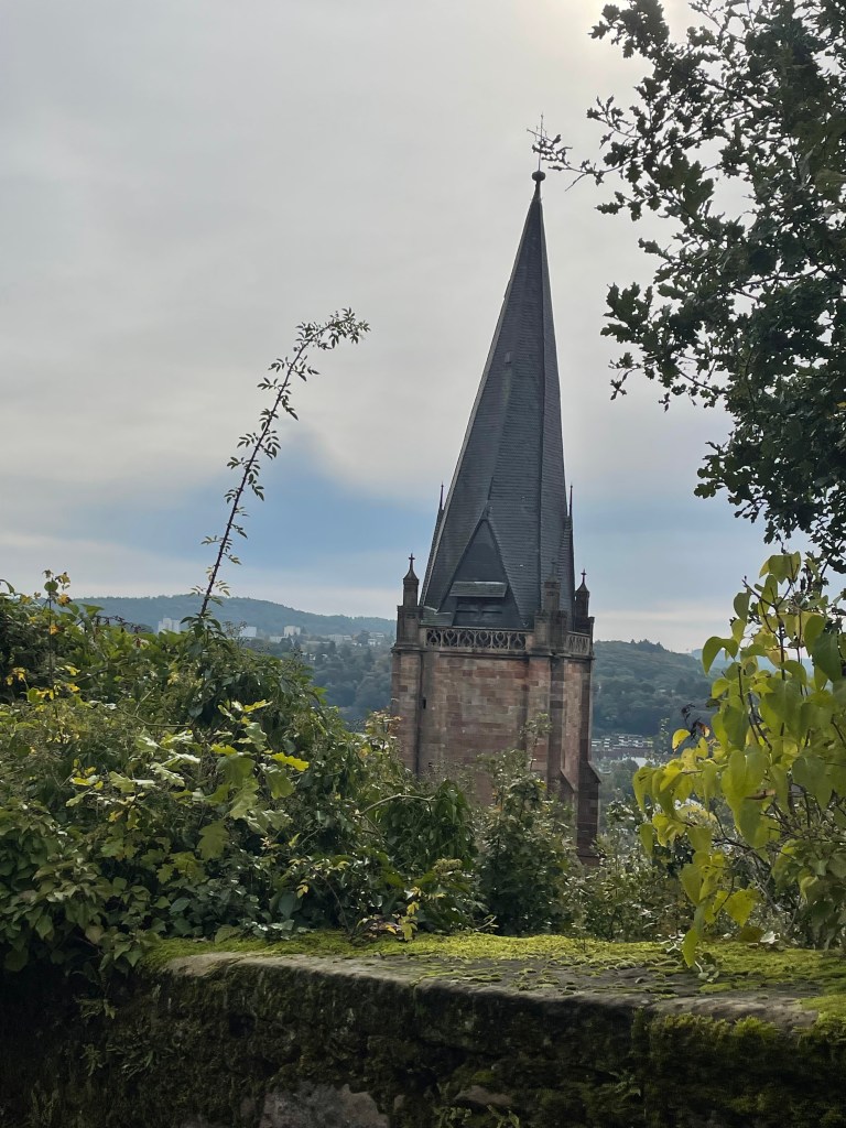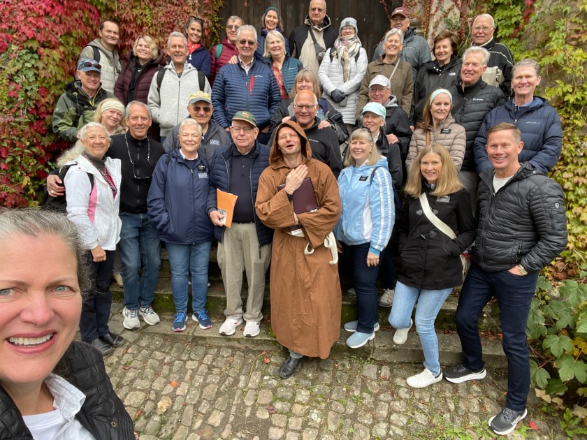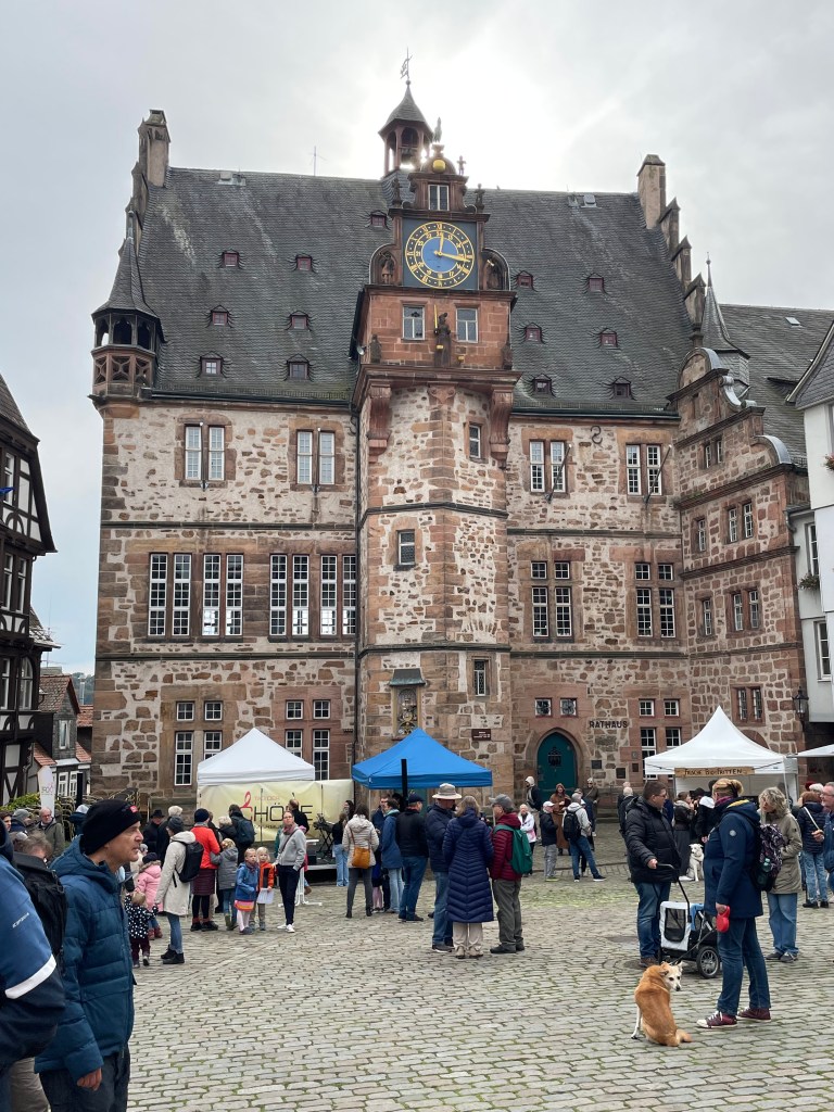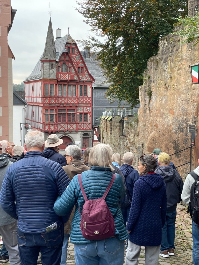 Sometimes group outings just sort of bubble up, like, “Hey, who wants to join us on a trip to Marburg??” Today we and several other couples drove about 1,5 hours north through foggy countryside to visit Marburg and the castle there. This was one of our first outings more than a year ago. Here’s a post from that visit. We were happy to go back.