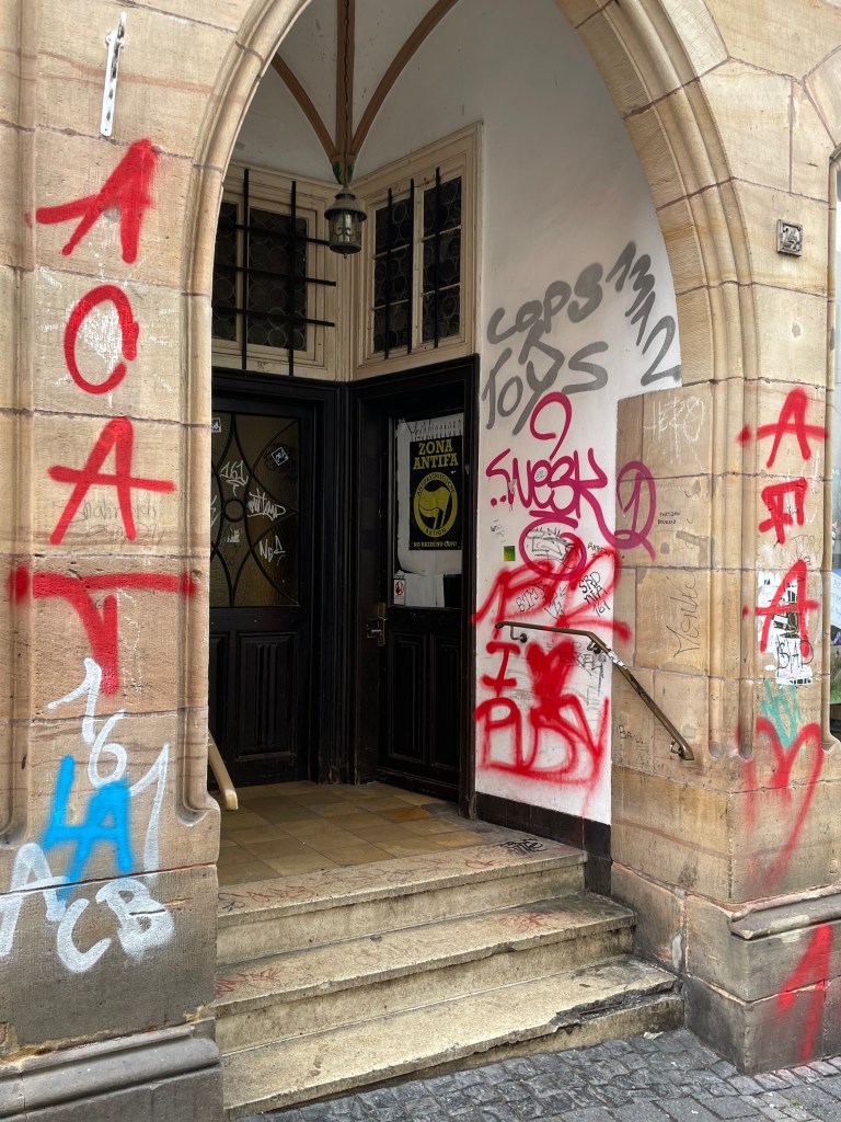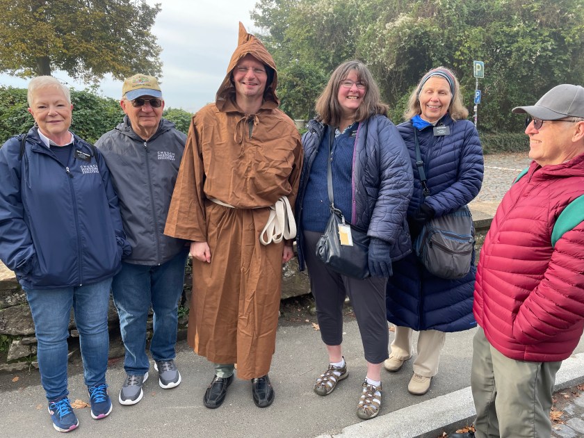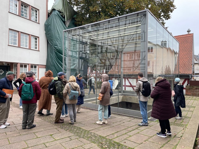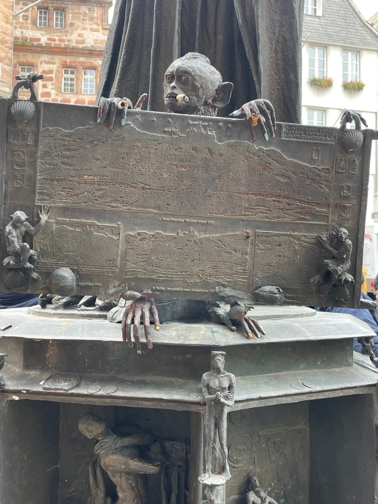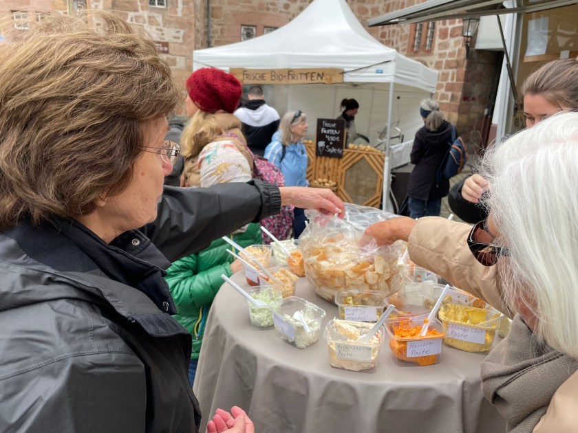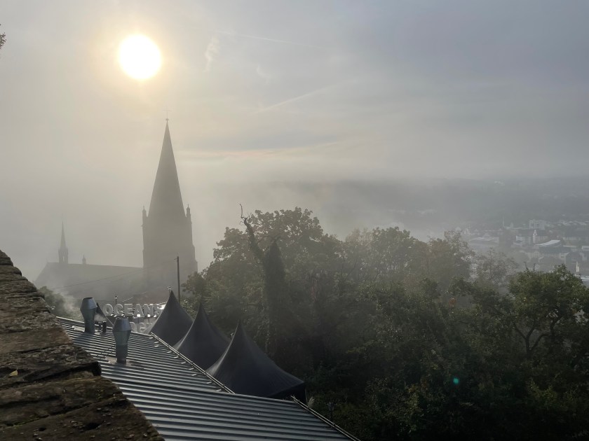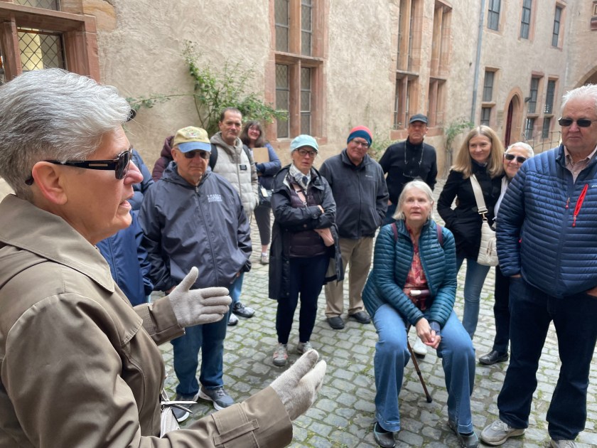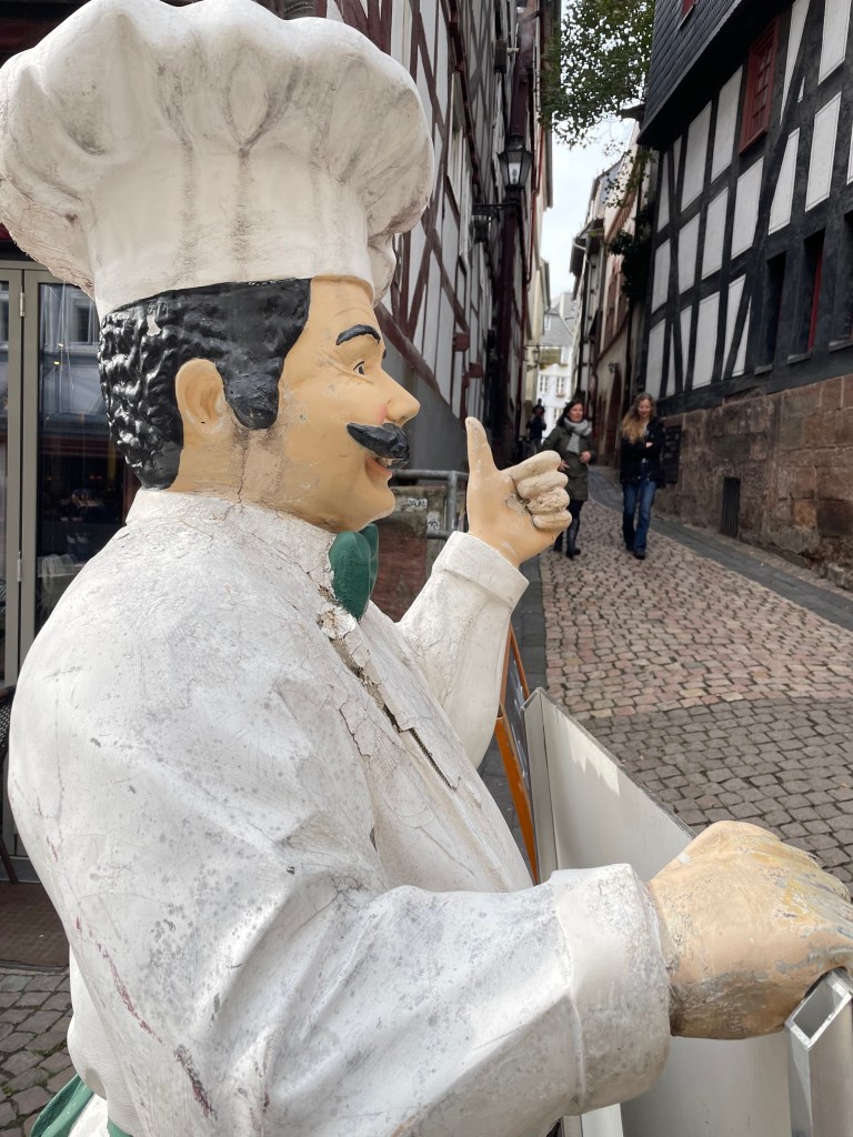 Sometimes group outings just sort of bubble up, like, “Hey, who wants to join us on a trip to Marburg??” Today we and several other couples drove about 1,5 hours north through foggy countryside to visit Marburg and the castle there. This was one of our first outings more than a year ago. Here’s a post from that visit. We were happy to go back.