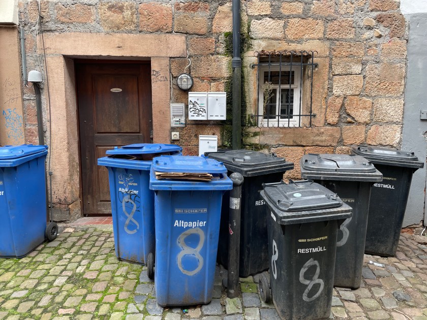 John took our trash down this morning and came back and said, “You’ll never believe . . . .” He showed me pics of our trash dumpster area. There are about 20 dumpsters down there for all of our different kinds of trash: paper, glass, cans, plastics, wet waste, and other garbage. The pictures showed several of the dumpsters burned and melted into heaps on the ground–maybe 12-15 of them were totally destroyed by fire. In the night, someone set off bombs in them, or something. The manager was down there assessing the damage. He said it was probably “idiots who had nothing better to do.” I posted the amazing pics on our German Sisters group and one said they heard what sounded like fireworks at 4:10 a.m. We didn’t hear a thing.