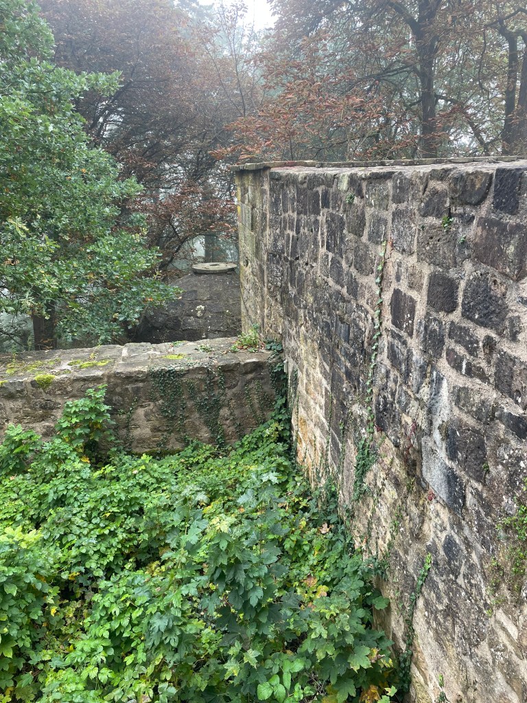 Below is a medieval toilet, that dropped waste into the garden grounds below.