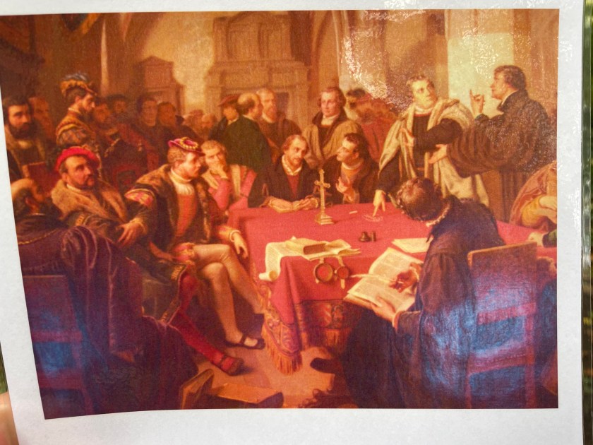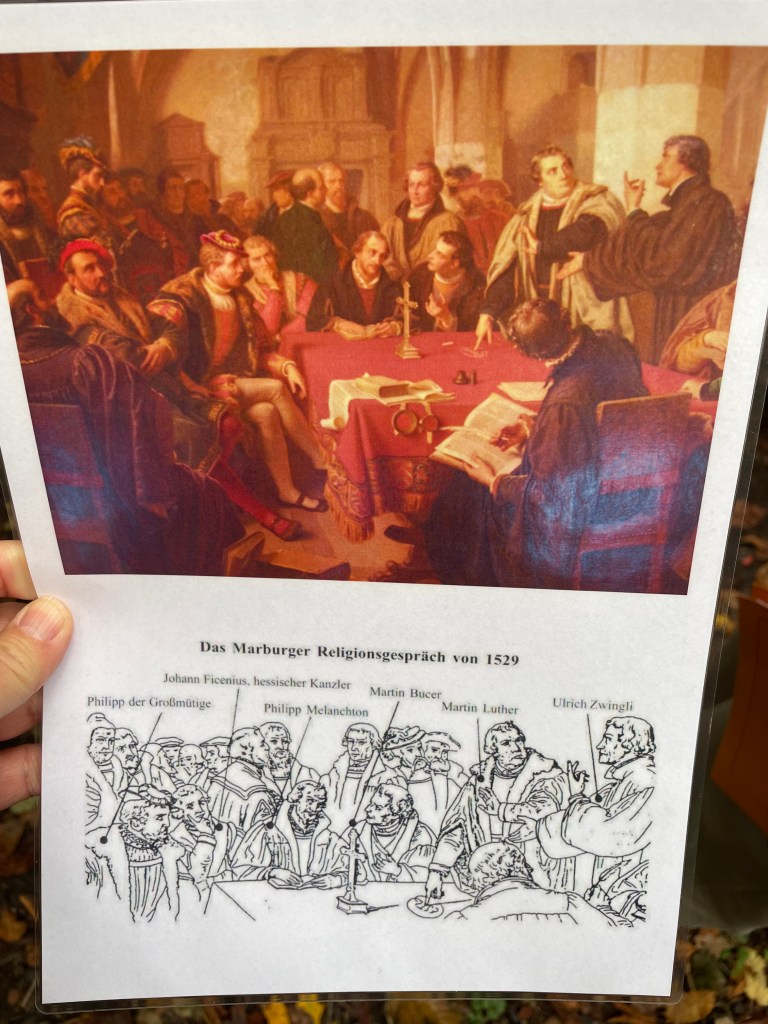 This was an important meeting of religious leaders at Marburg in 1529 where they discussed the true meaning of the Sacrament–was in a symbol of Christ’s body and blood, or was it literal?