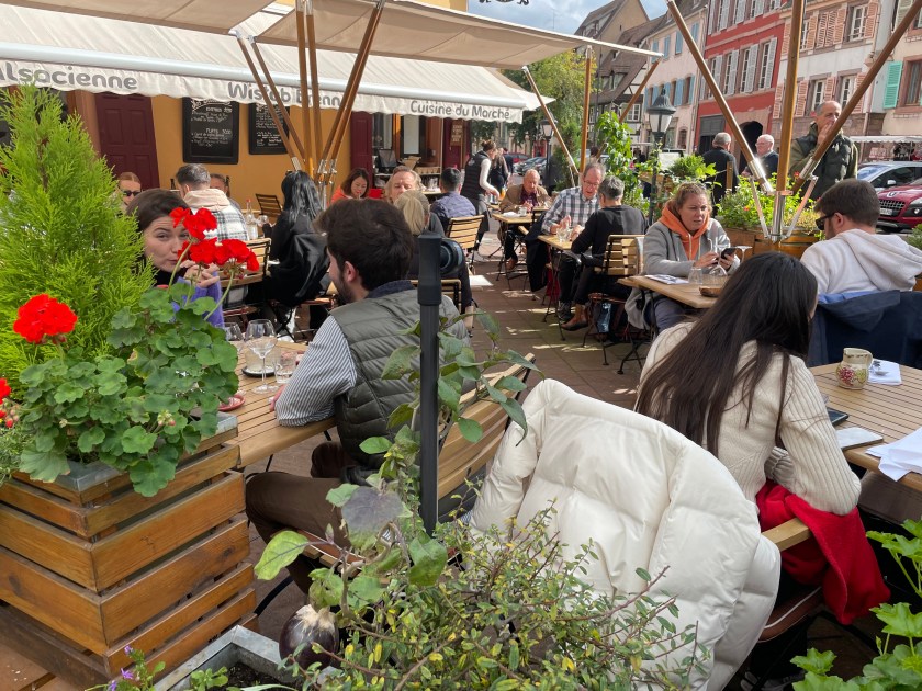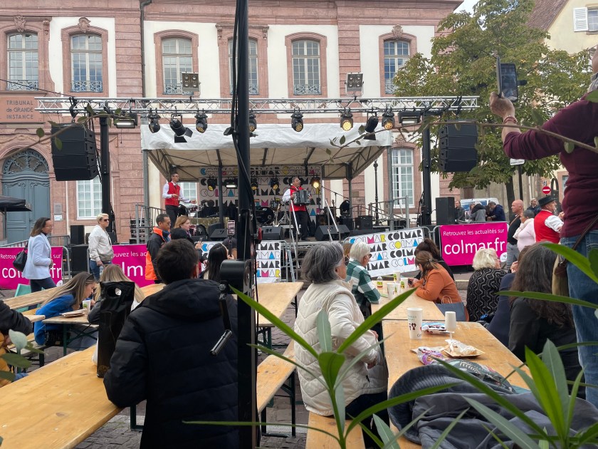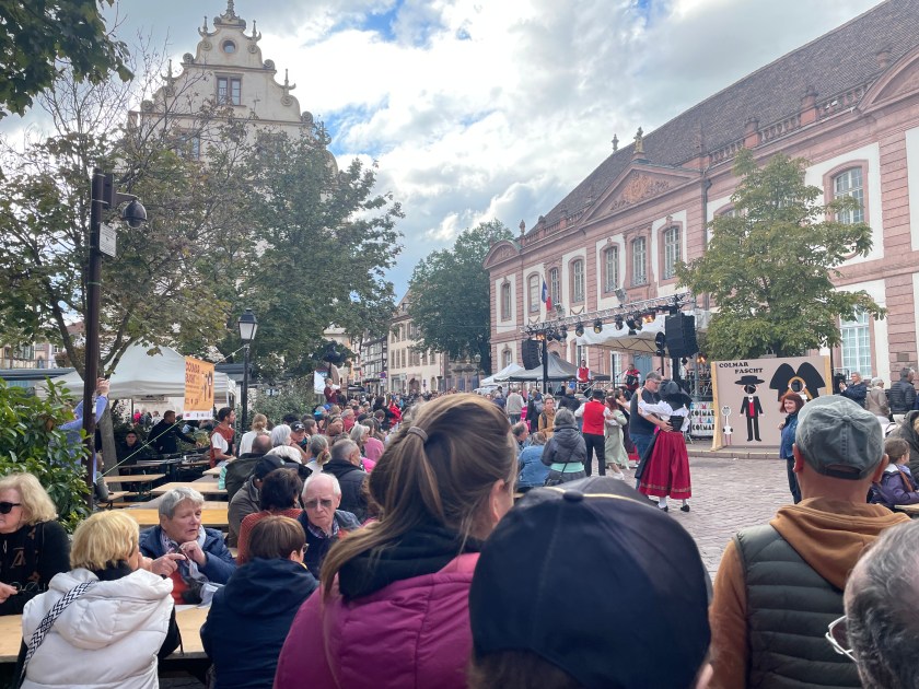 We drove through beautiful vineyards along the wine route to our next stop: Colmar, where we spent the next 2.5 hours wandering through a larger but still charming town. There was a fall festival going on. People in Europe are out on the weekends, enjoying the sights with their families.