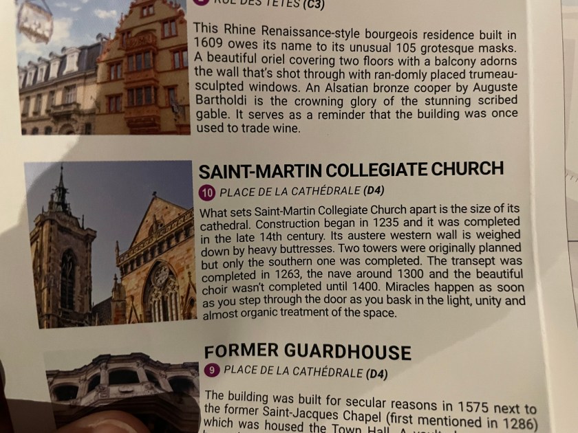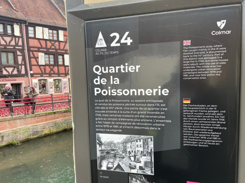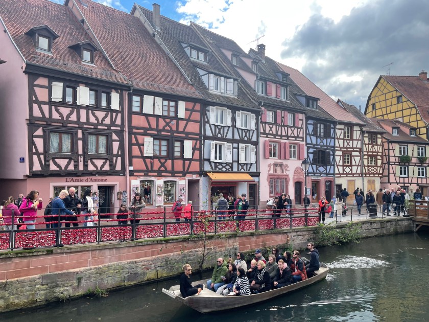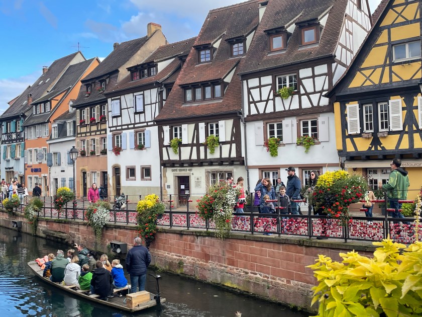 There’s a part of Colmar called “Little Venice” with some water canals and boats with people. The homes here were colorful and old and beautiful. It’s all overwhelmingly beautiful, hard to capture in words. What I love most is the attention to detail. Everything is kept up and beautiful. It’s like the people here CARE about the whole and the old is loved and respected, not replaced by the modern or new. Yes, the shops are new and modern, but they’re in the ground floor of the beautiful old buildings. The integrity of the history is maintained and I love that so much.