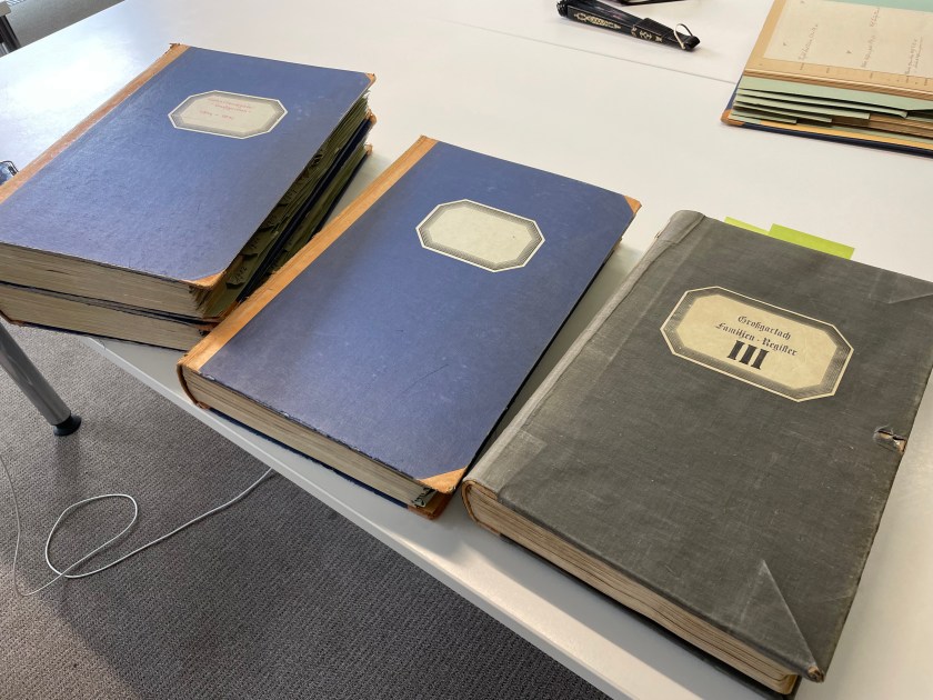 My goal this week was to photograph as many pages of Grossgartach records after 1876 as possible.  I’m allowed to see anything outside of the privacy limitations (110 years for births, 80 years for marriages, 30 years for deaths).