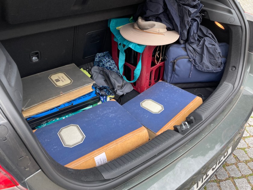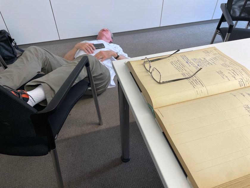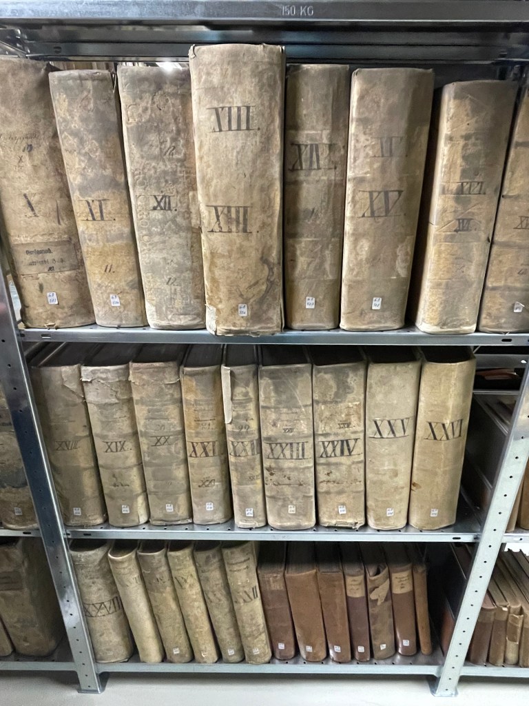 By the end of our third day in the archives, we were exhausted!  I photographed 15 of the 19 large old books we copied.  John and Jutta helped do some too.  My hand was EXHAUSTED from clicking photos and my back was aching and cramped from standing and bending over books all day.  I’ll take 17,323 images home with me to transcribe.  It will keep me busy for a while!