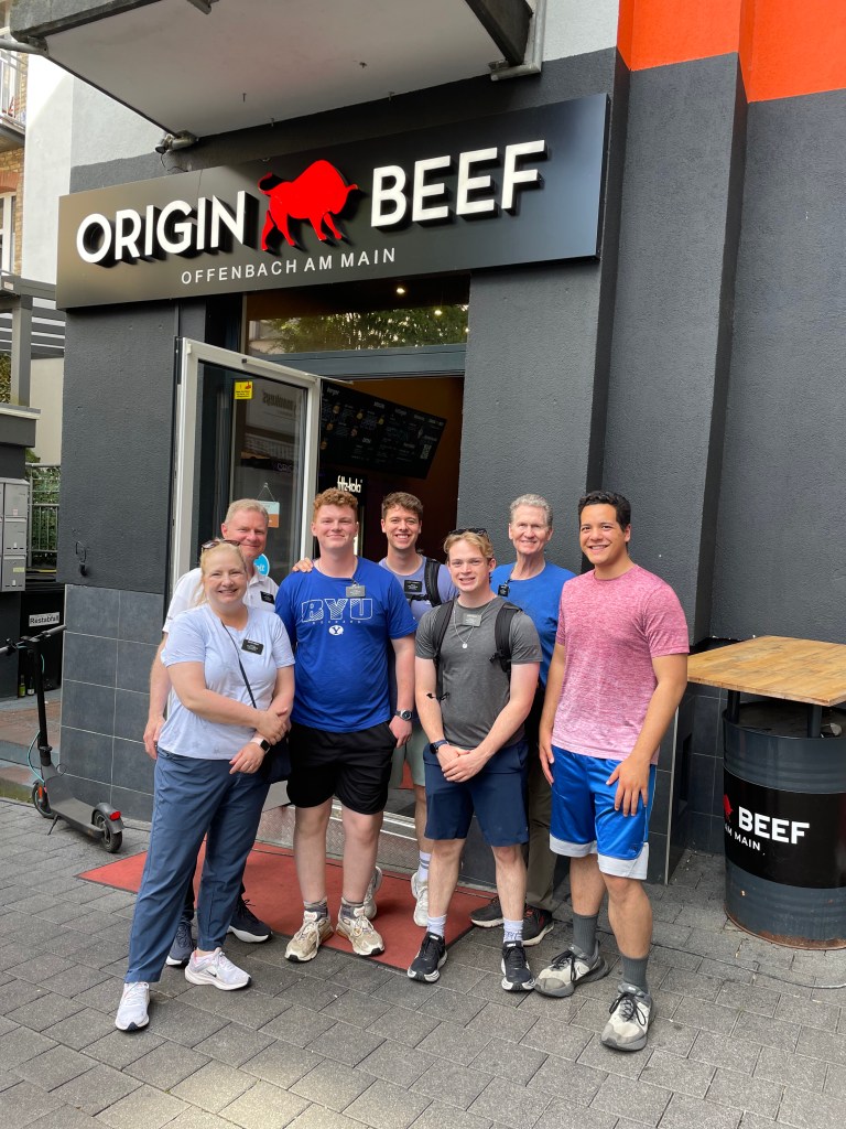Carter Smith, one of our Yakima missionaries, and his wife Makylee, came to Frankfurt last night to see the soccer match. They’re here in Germany visiting friends. They blew in late last night and today after our meetings we took them to downtown Frankfurt to show them around for a couple of hours. It was fun.