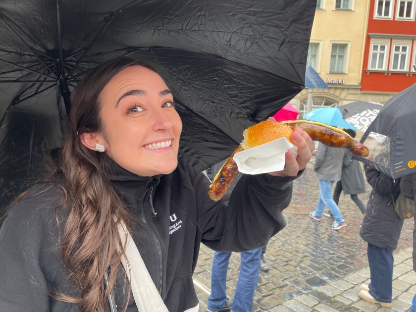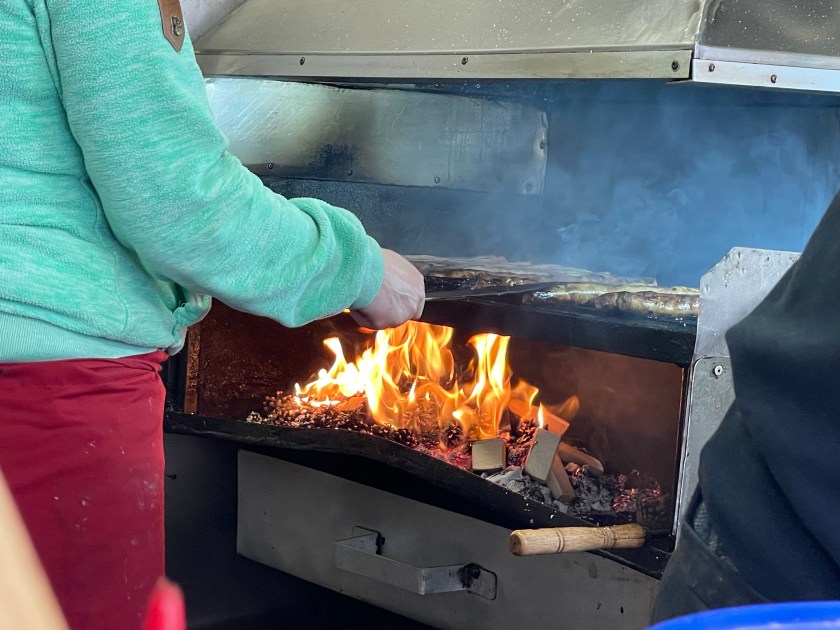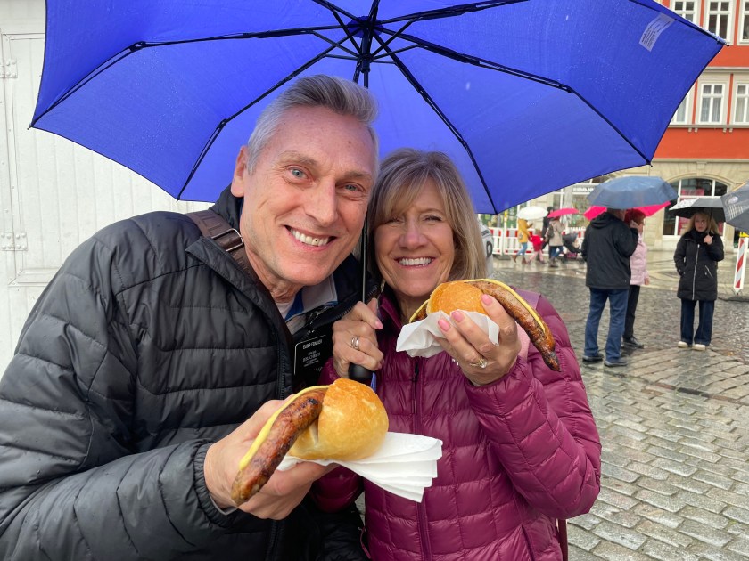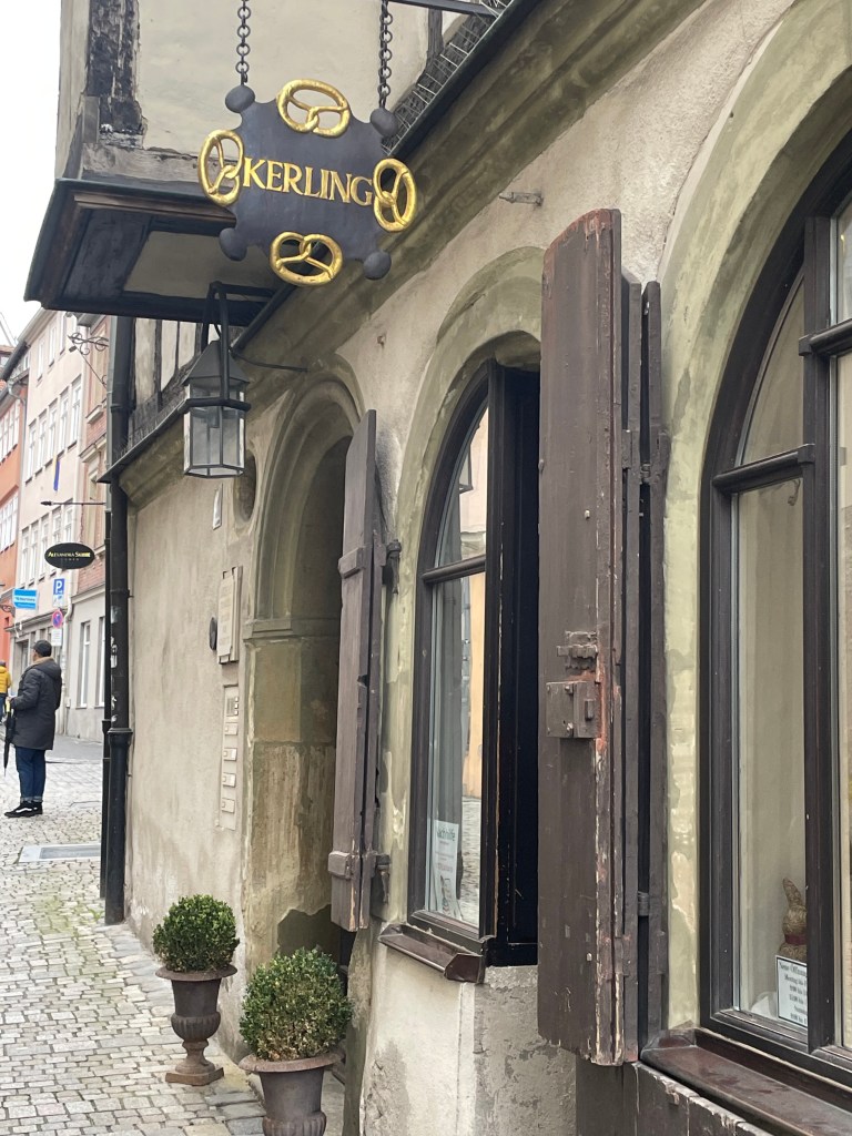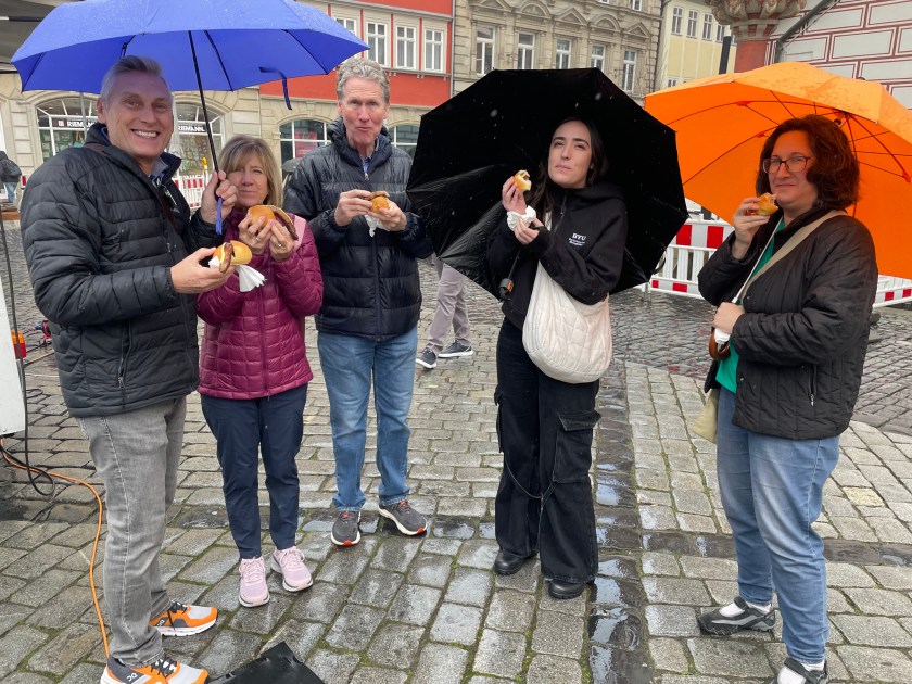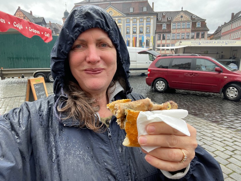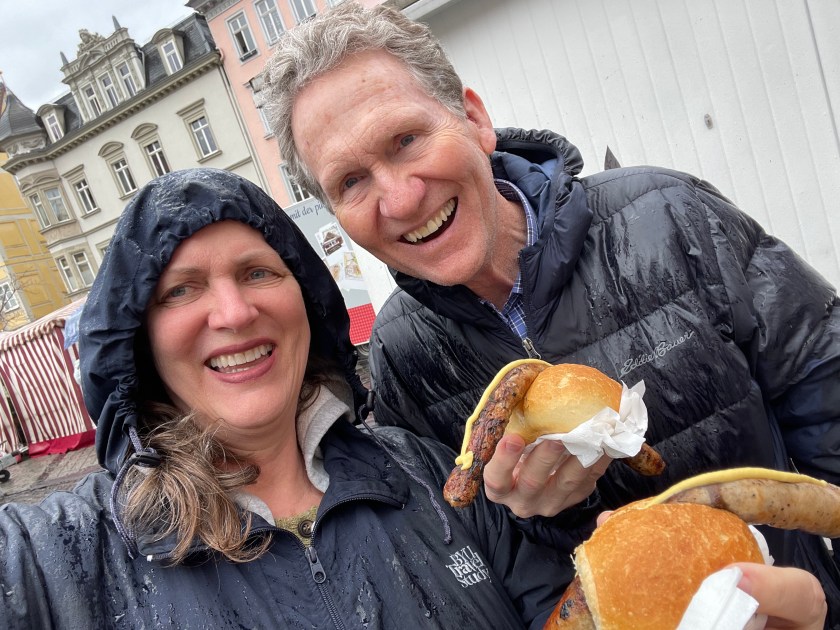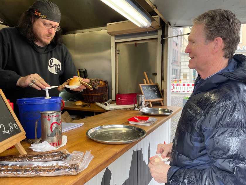 Our co-worker, Ralf, tells us that Coburg Brats are the best in Germany.  Every area and every Brat maker has their own special recipe and technique.  The Brats here in this place in Coburg are grilled over a pinecone fire.  They really were delicious.