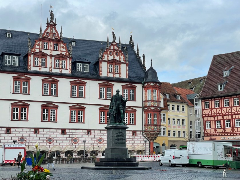 Today’s Saturday outing  took us to Coburg, about a 3 hour drive from Frankfurt.  We went with our department co-workers and we had an excellent sort of day.  We spent several hours in the castle. It was really well preserved and the rooms were filled with so many interesting things as you will see below.