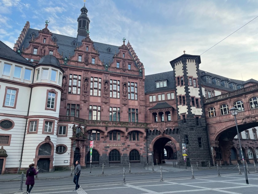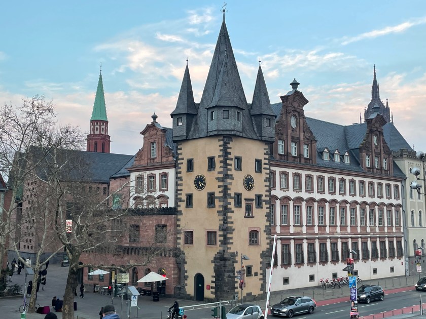 Our neighbors from home are in Germany for a few days and we got to see them!!  Dave and Tami live down the street from us.  What a happy reunion we had this evening, catching up on all the home news and news about our kids.  We spent the afternoon and evening showing them around a bit of downtown Frankfurt.