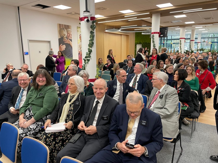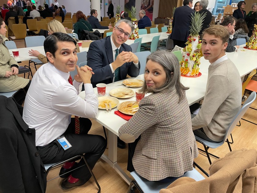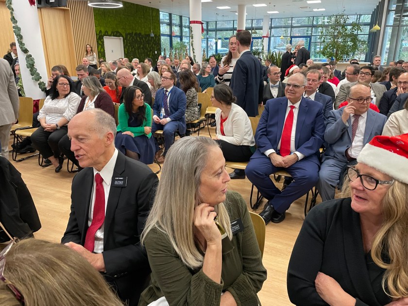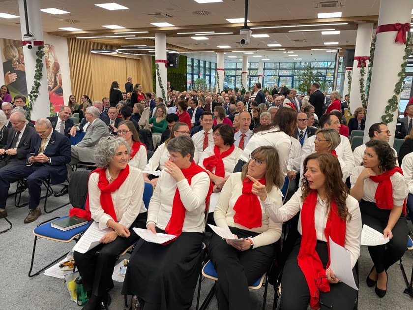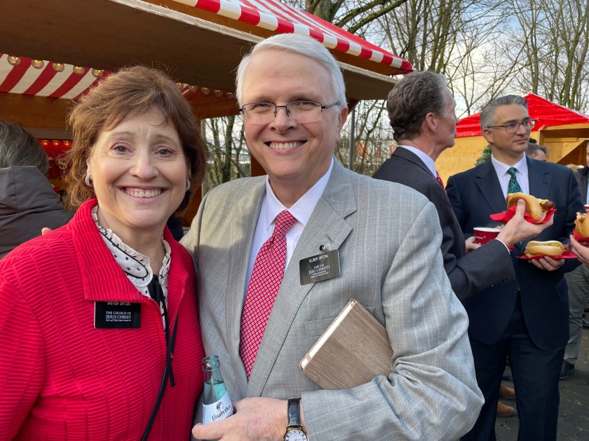 Today was our “Workforce Christmas Devotional.” At 11:00 everyone in the building gathered in the newly-finished multipurpose room downstairs for this special meeting with our Area Presidency and their wives–the De Faos, the Alliouds and the Gerards.