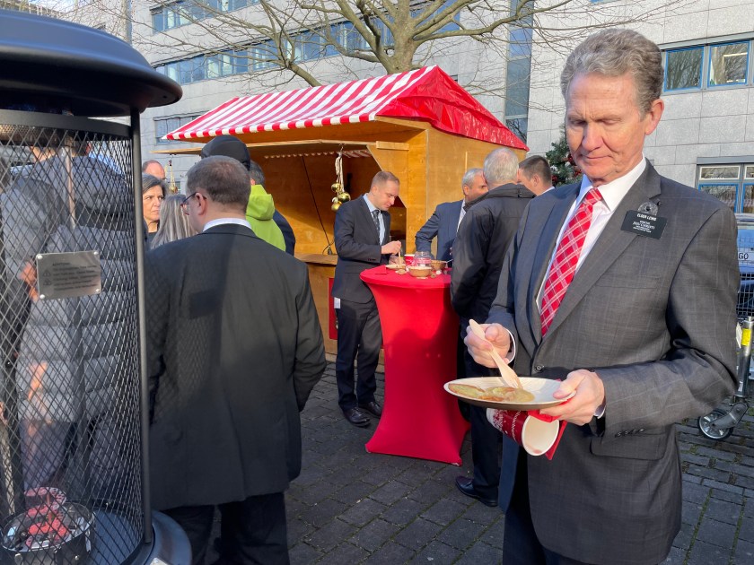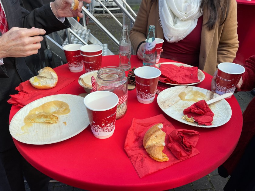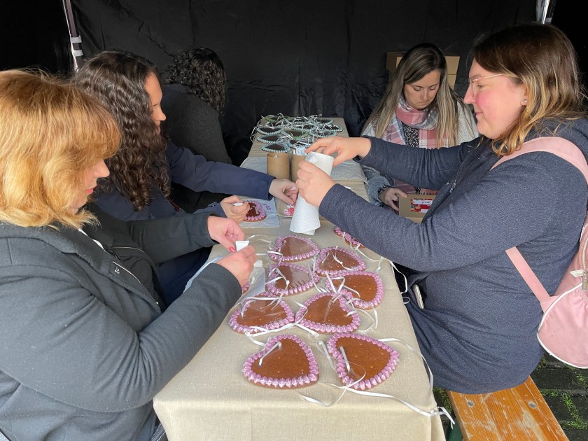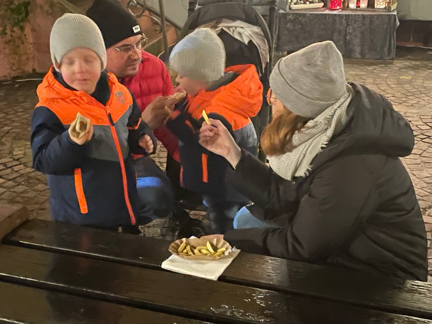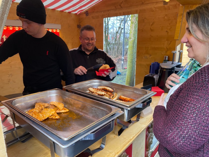 After the meeting we all went outside for our own Christmas market! We were so surprised at what we found in the parking lot! Lots of booths and food and activities! We spent the afternoon there enjoying our friends and some good food.