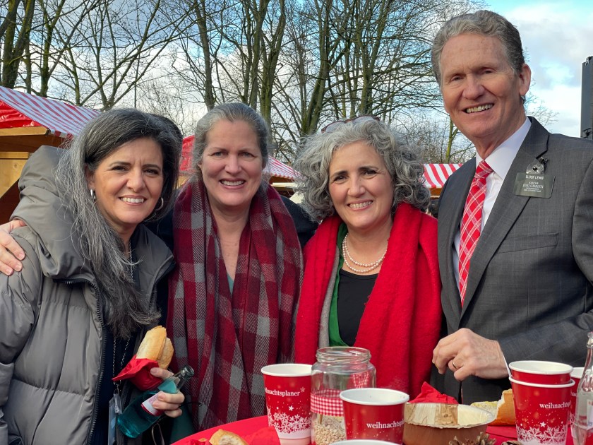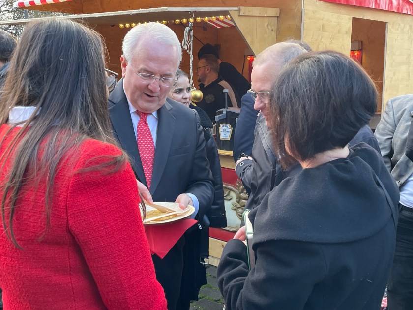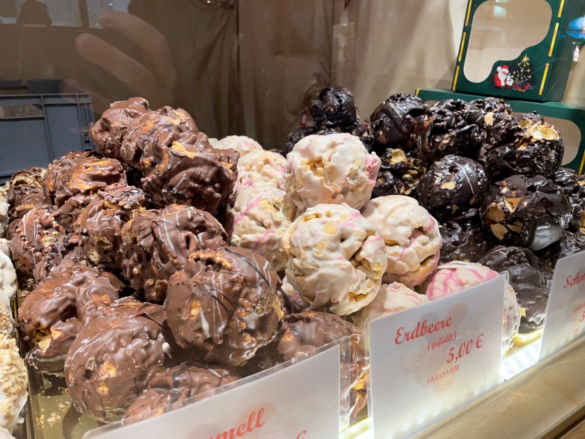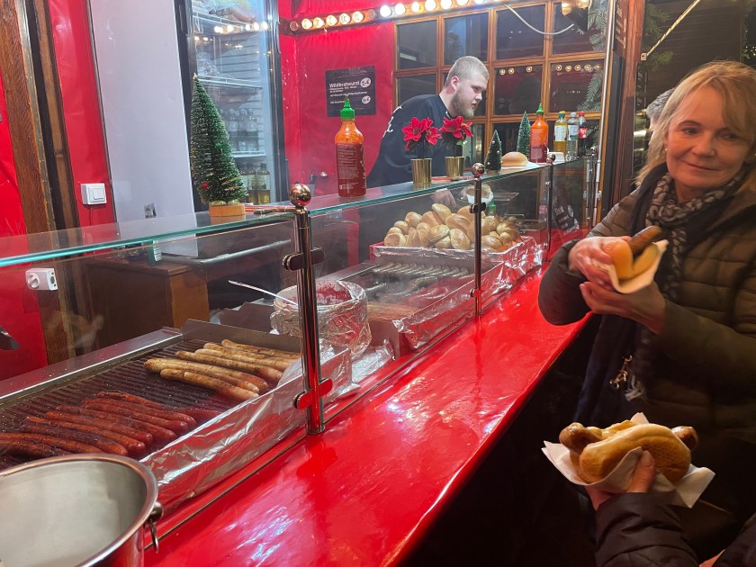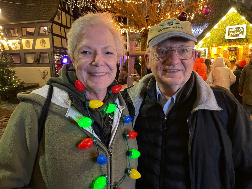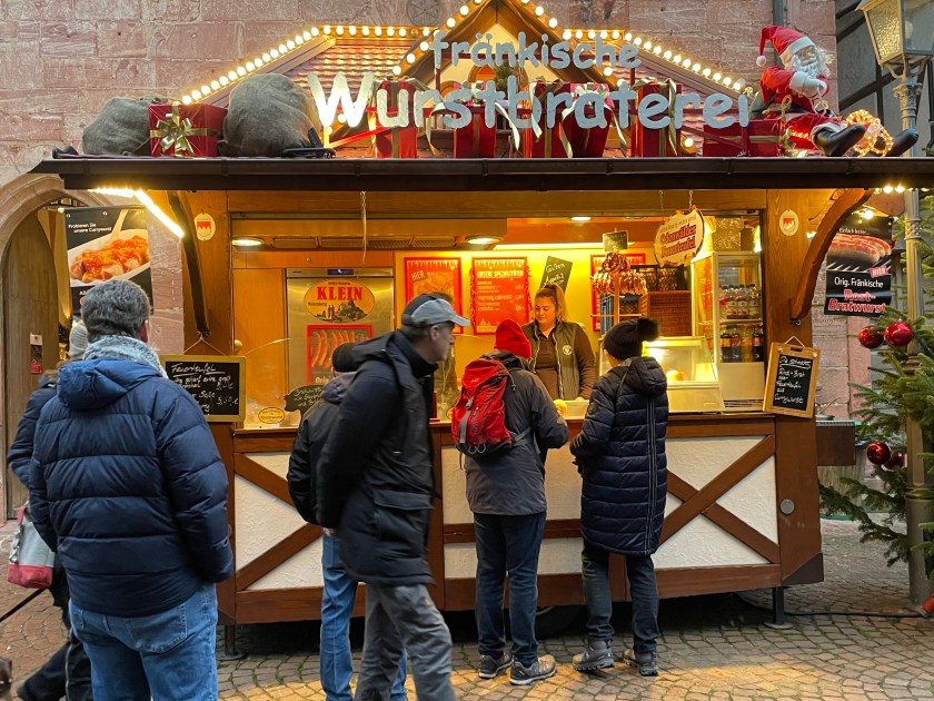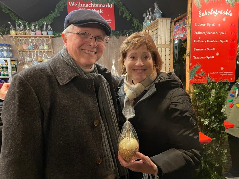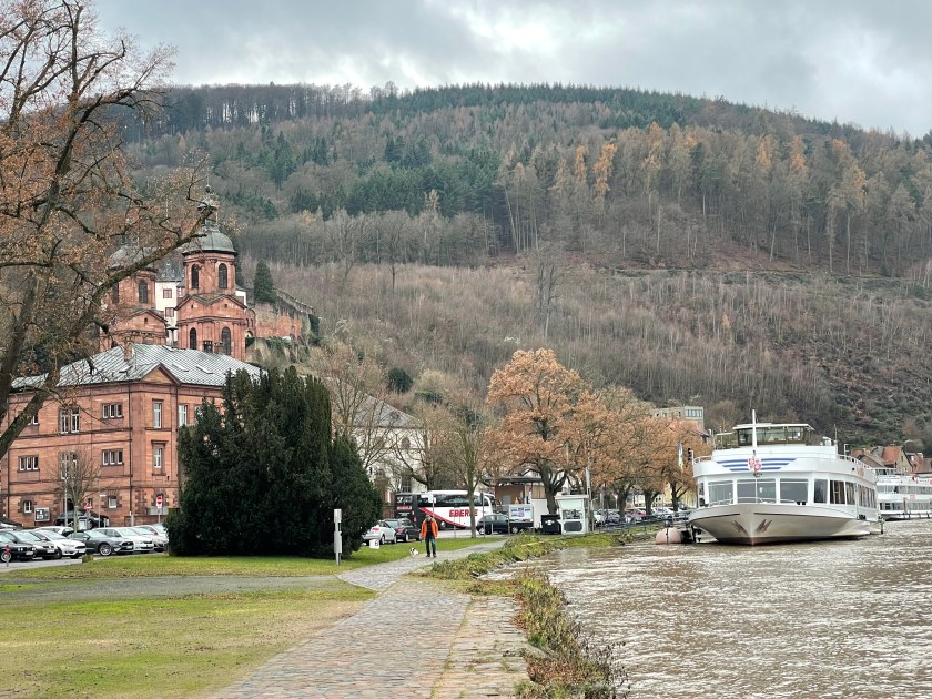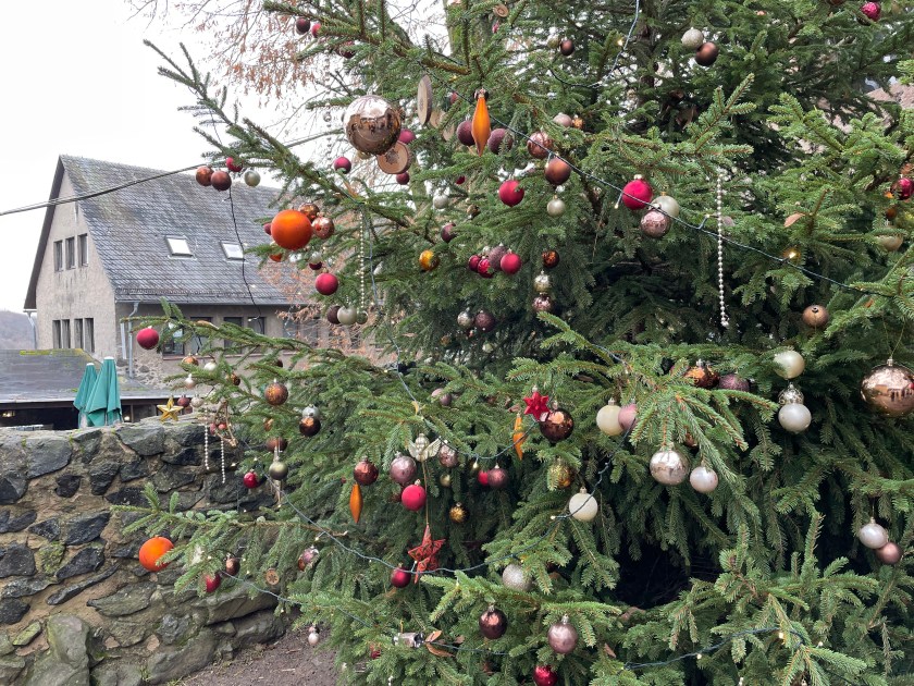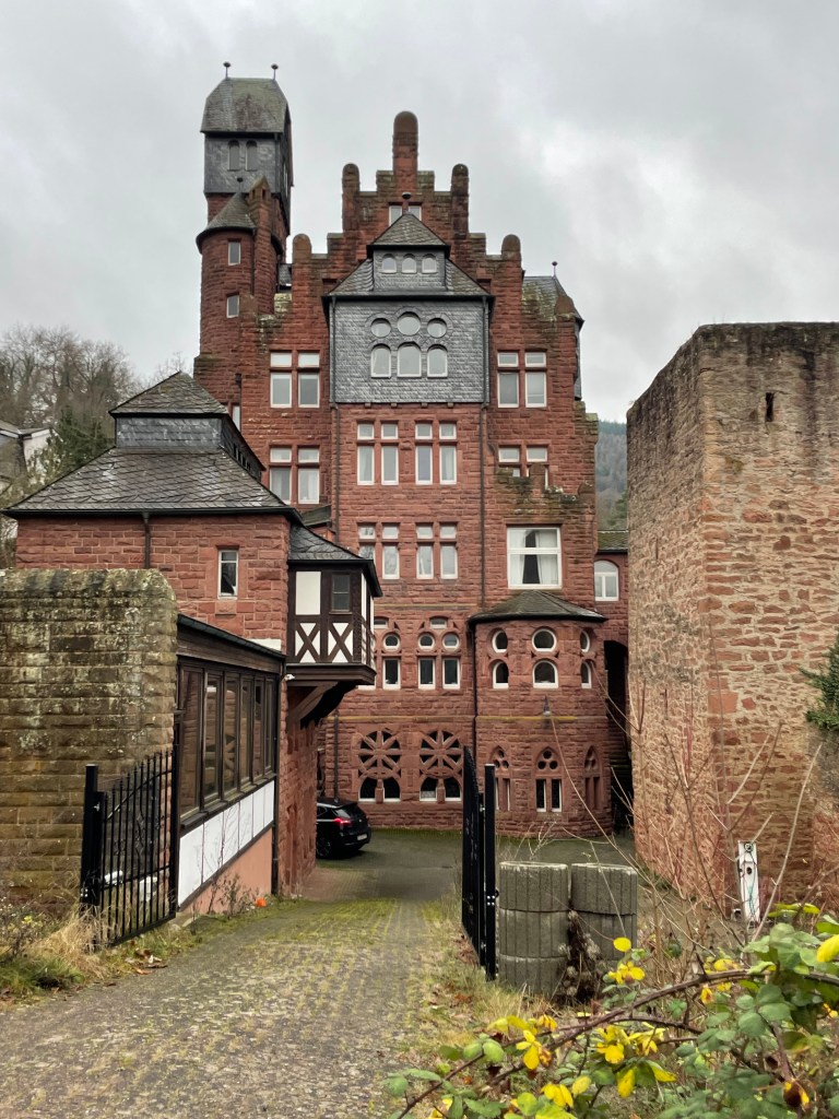 We took the afternoon off to go see two more Christmas markets–Miltenberg and Michelstadt, both about and hour or so from Frankfurt. Miltenberg, our first stop was absolutely delightful. We arrived at about 2:00 and wandered through the town along the main street. There were Christmas market stalls set up along this main street and a few in the small central plaza. It wasn’t what you’d call a large market, but the town was so festive and beautiful, we were really glad to be there during this Christmas season.