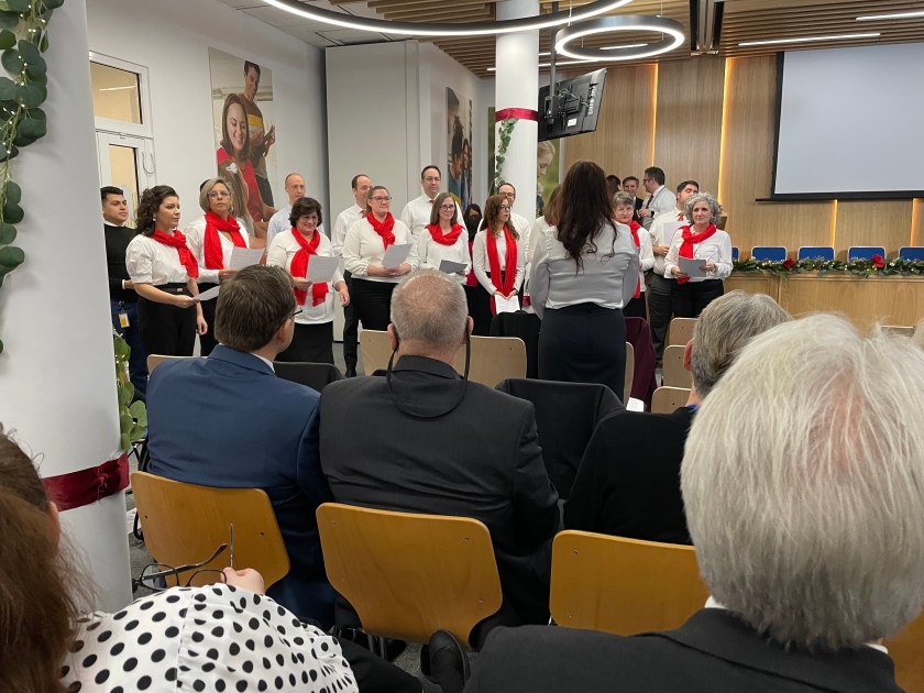 We had an employee choir sing to us, then we got to listen to our leaders share Christmas messages with us. We really enjoyed it and enjoyed getting to know them better.