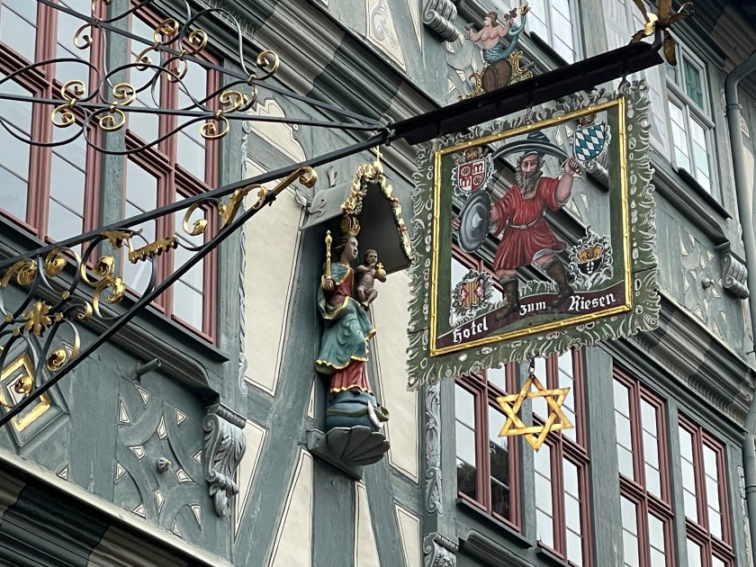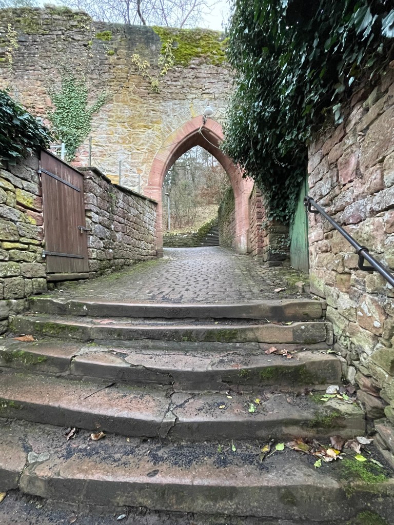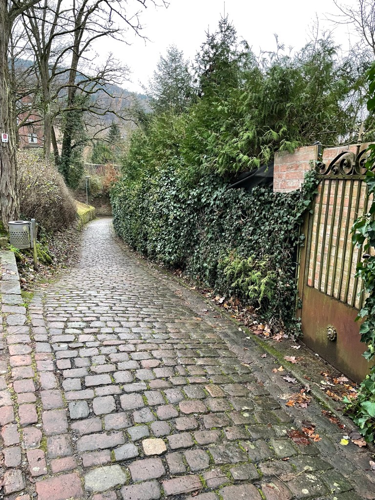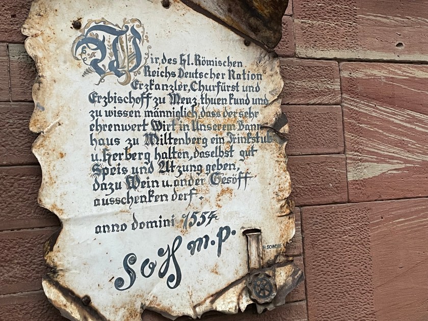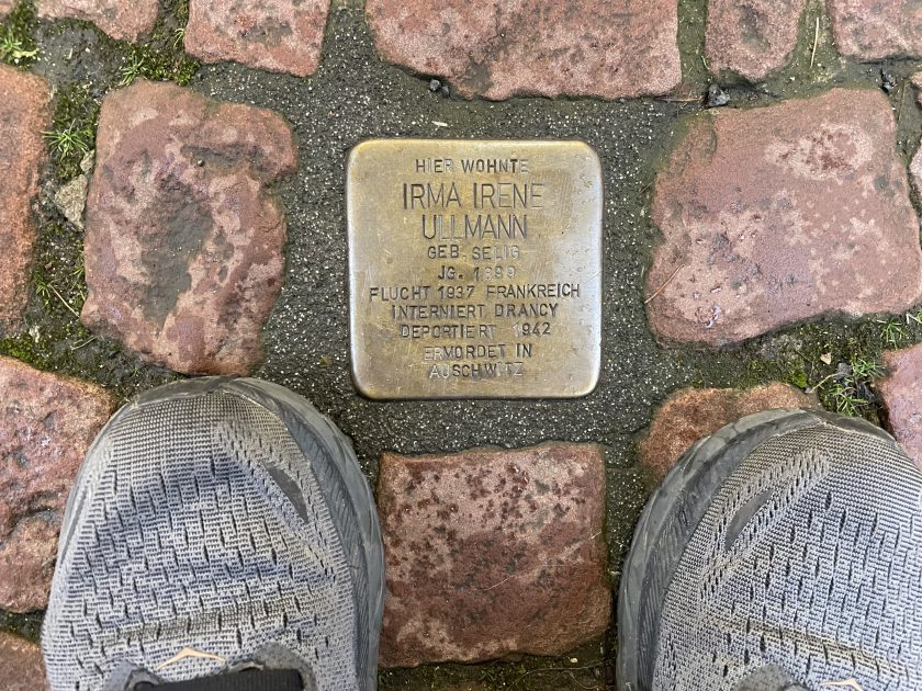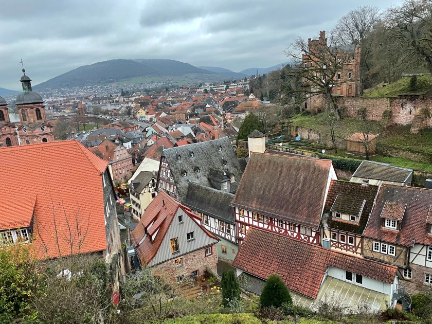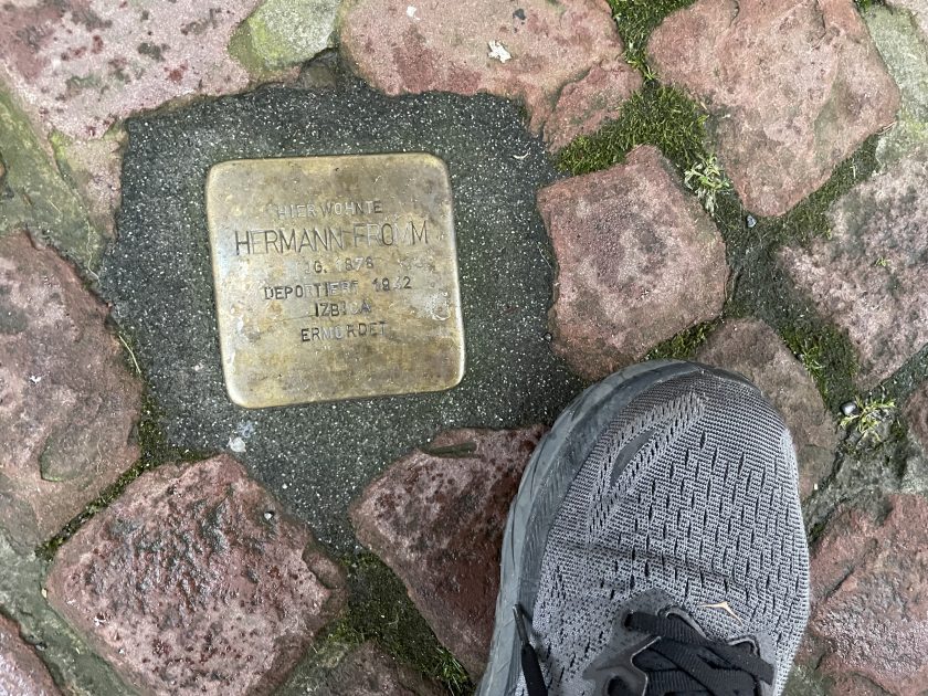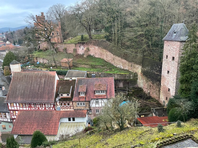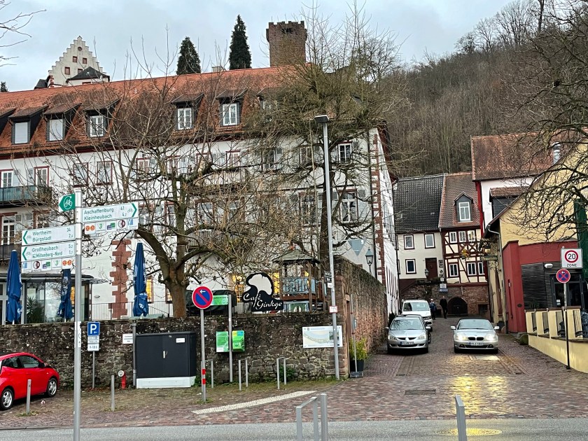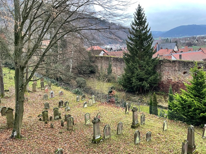 Here is the old Jewish cemetery. We noticed a dozen or more “Stumbling Stones” in the street down below. There were 44 memorial stones in Miltenberg in 2020. These represent Jews who were killed in the Holocaust.
