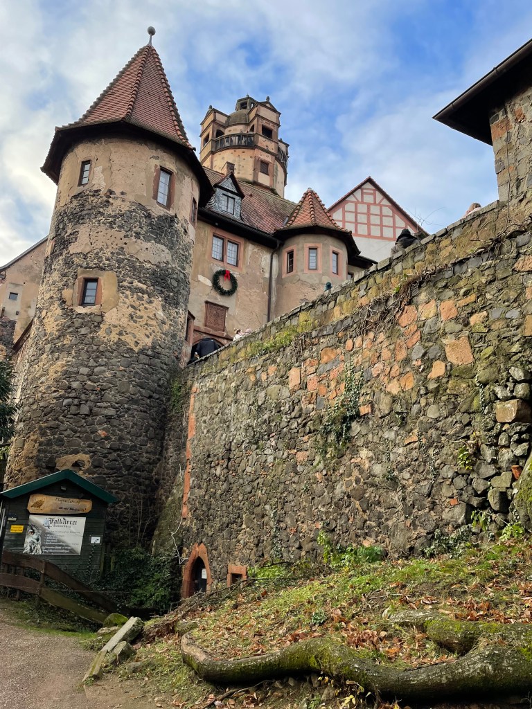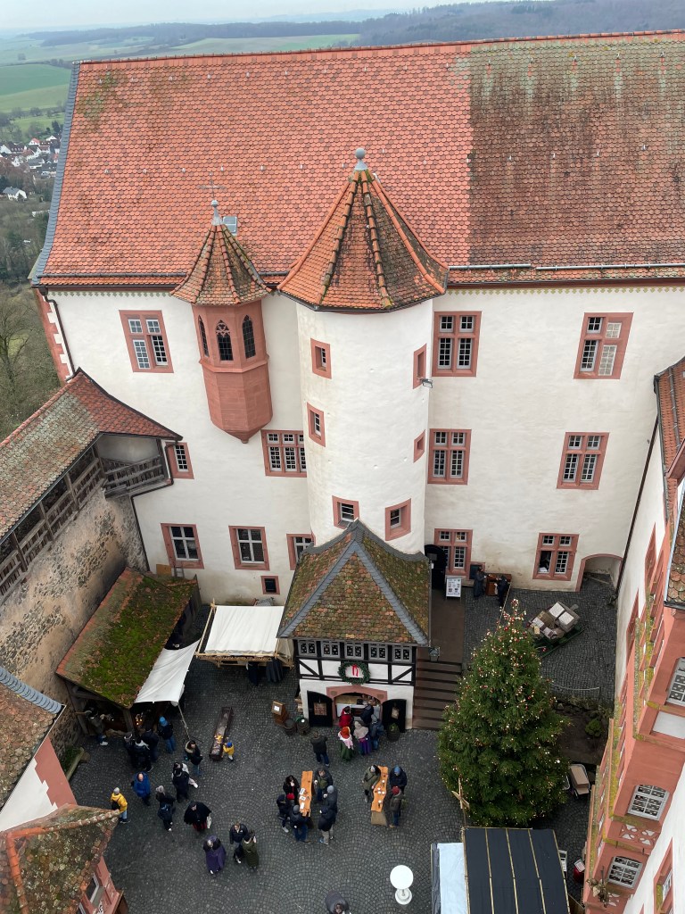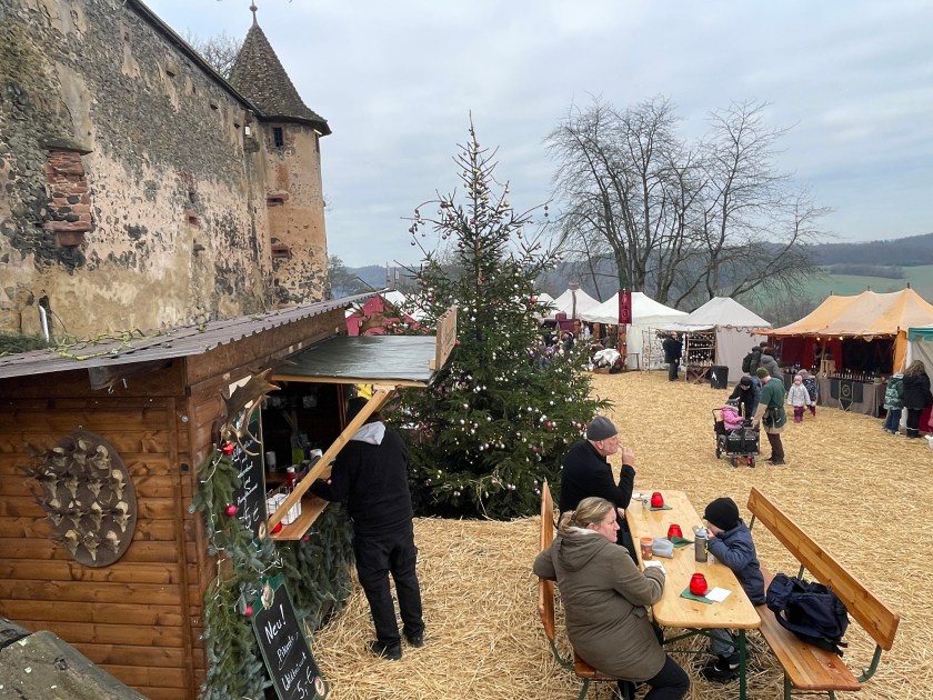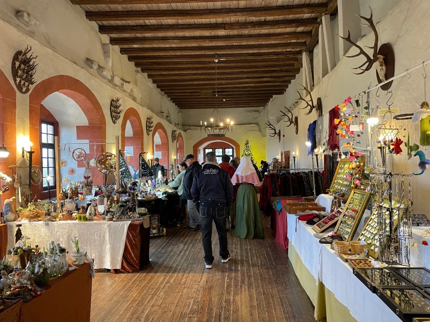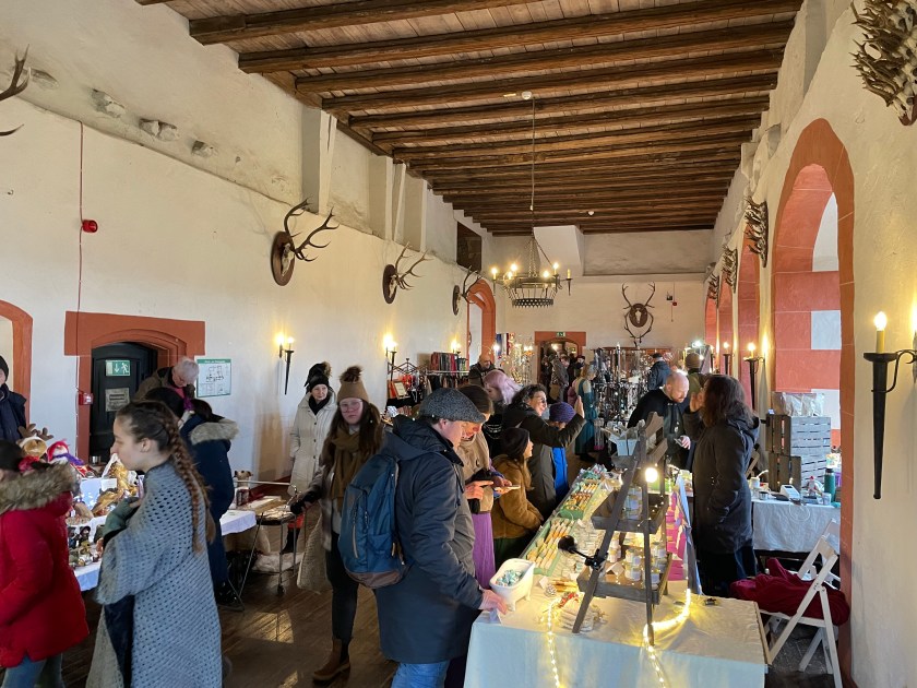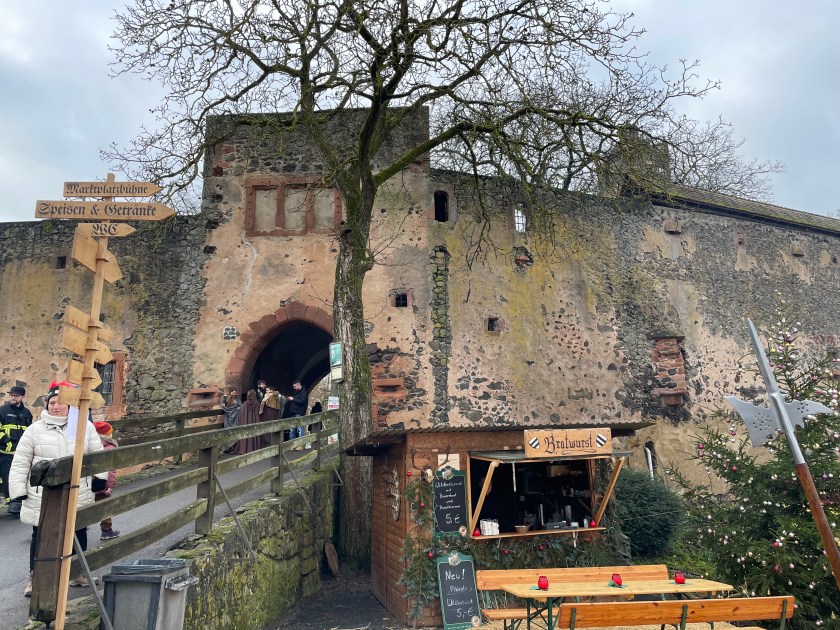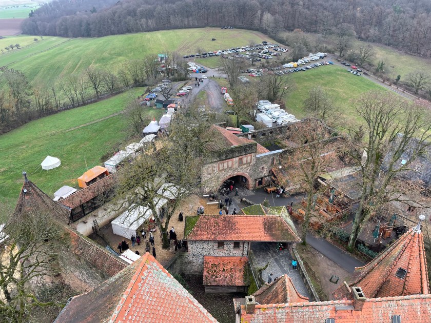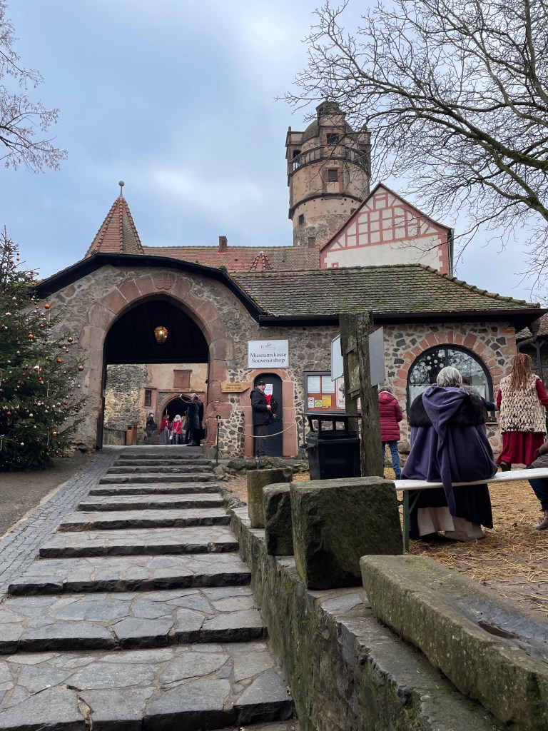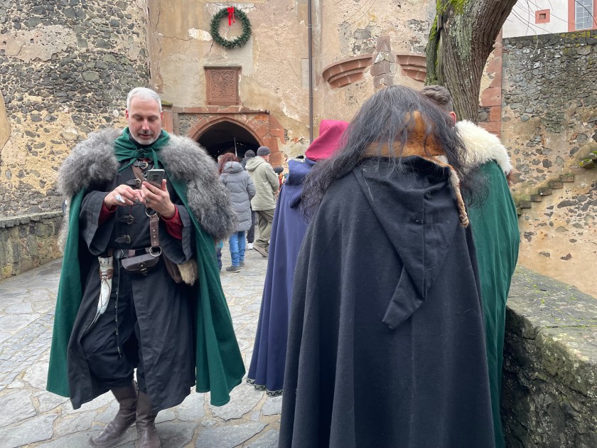 Less than an hour from Frankfurt is the Ronneburg Medieval Castle, today’s Christmas Market destination. This castle dates back to the mid 1200s and we’d heard a lot about the Christmas Market there–if you come dressed in medieval clothes, your ticket is discounted.