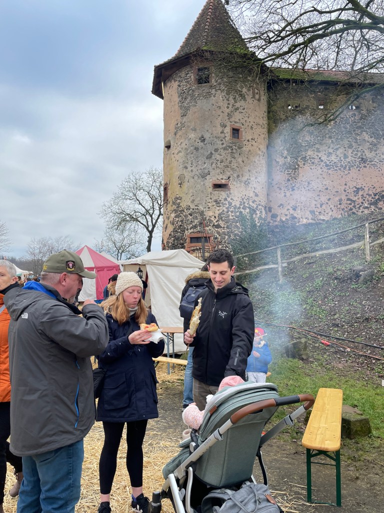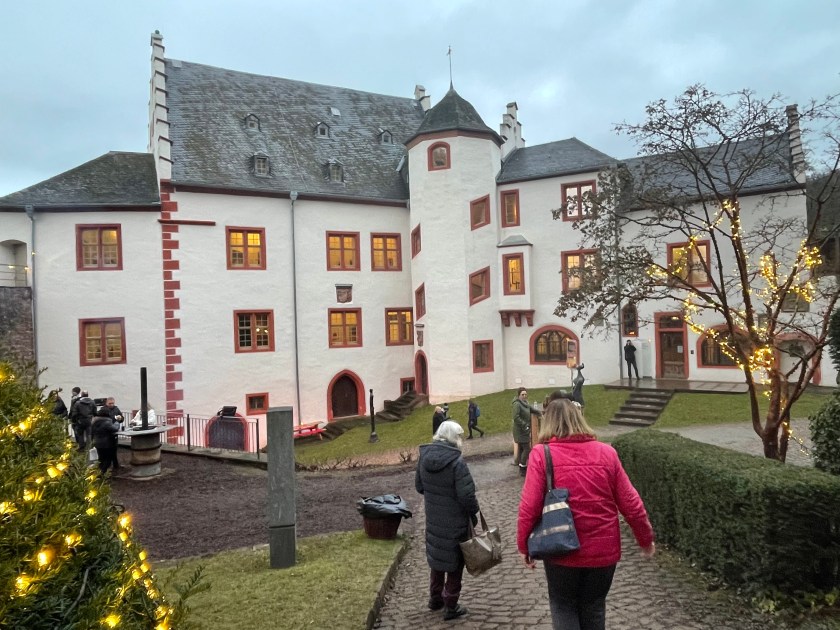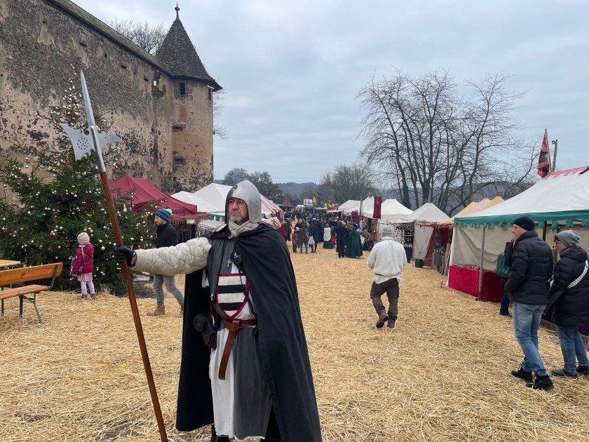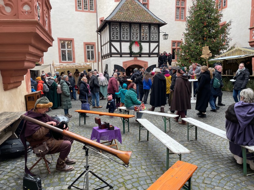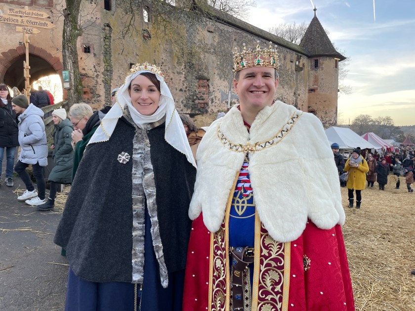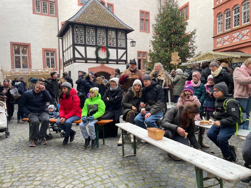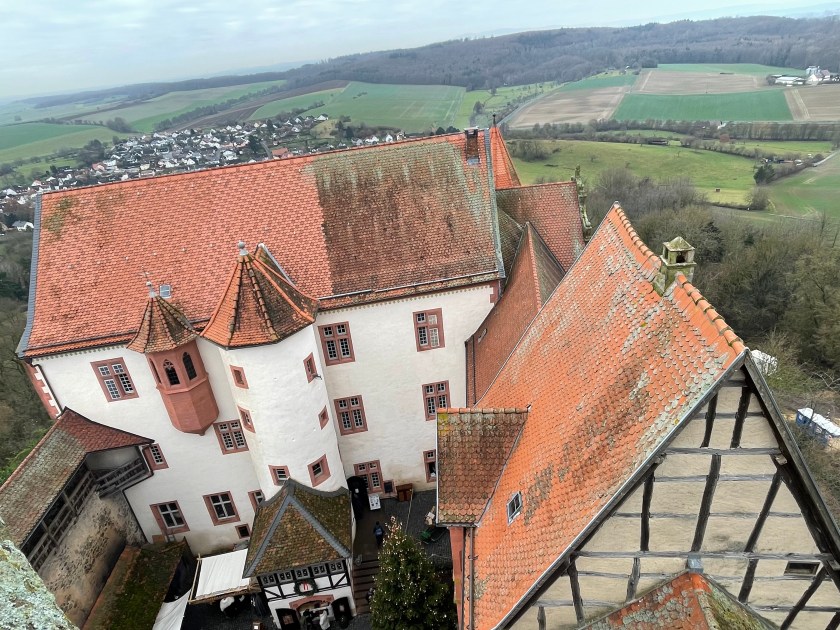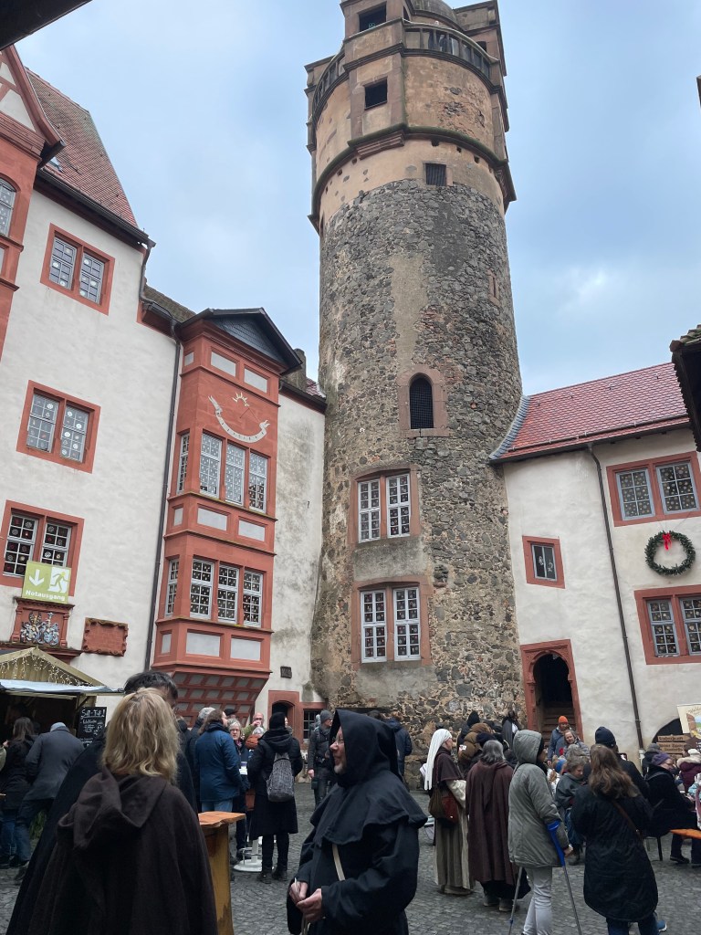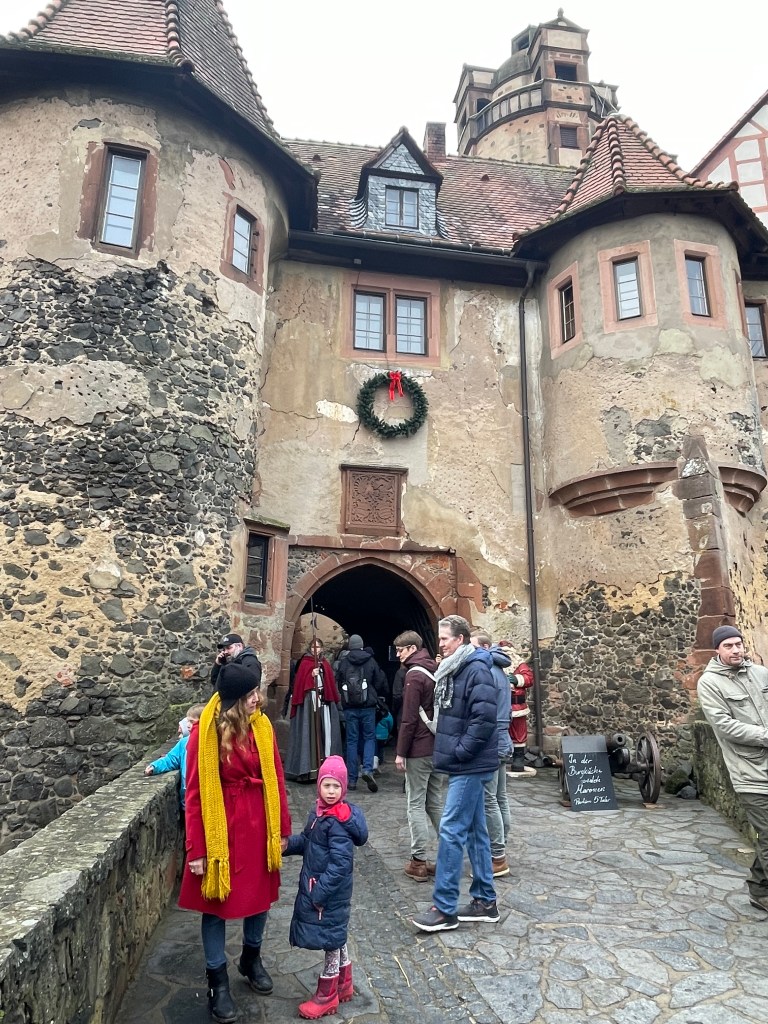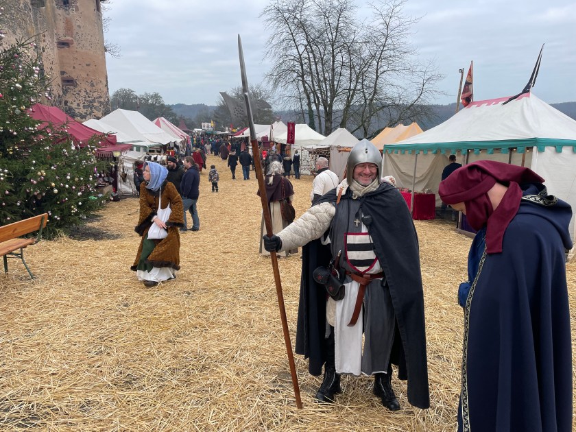 Less than an hour from Frankfurt is the Ronneburg Medieval Castle, today’s Christmas Market destination. This castle dates back to the mid 1200s and we’d heard a lot about the Christmas Market there–if you come dressed in medieval clothes, your ticket is discounted.