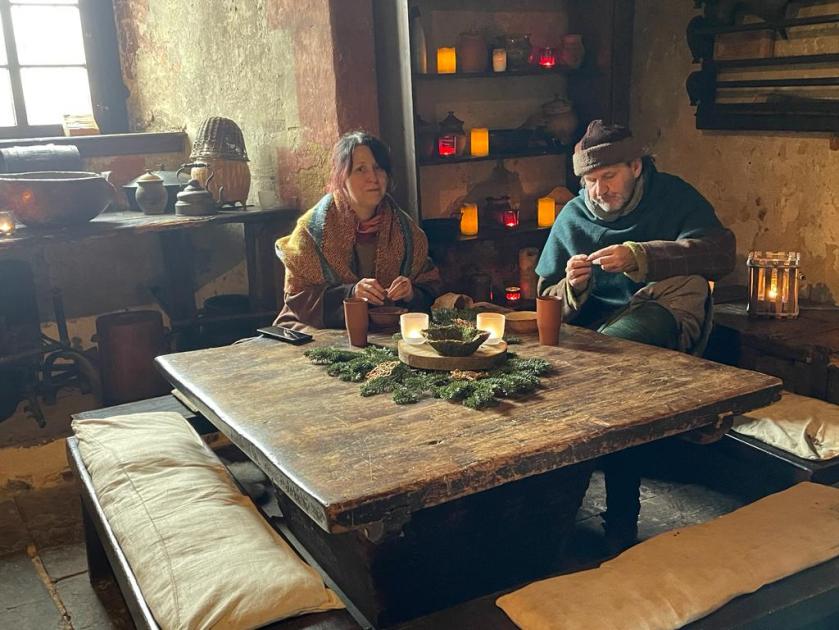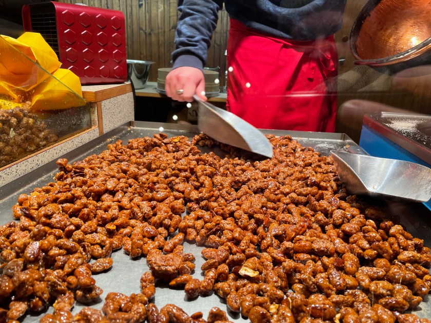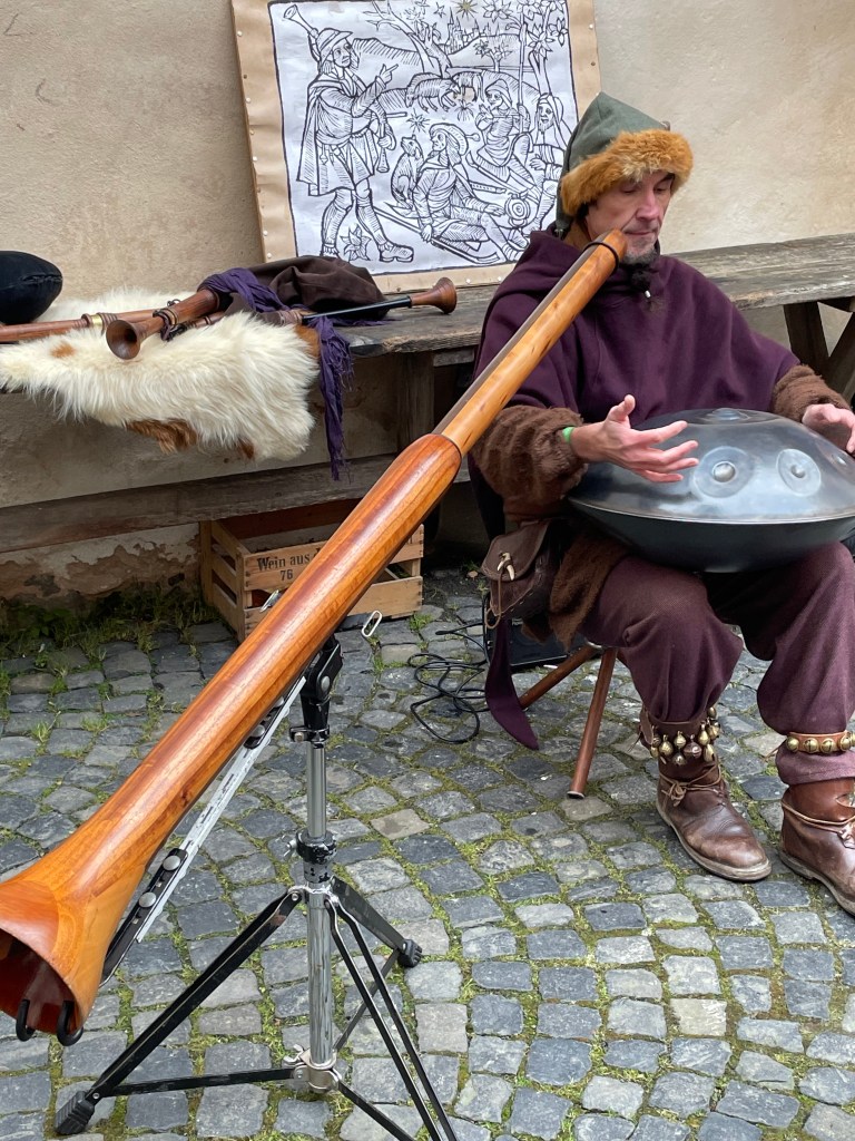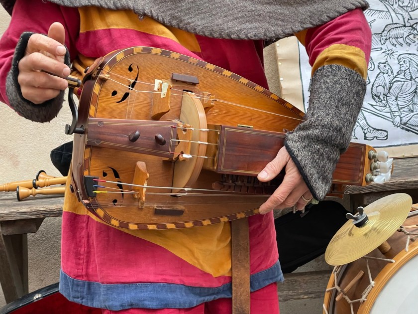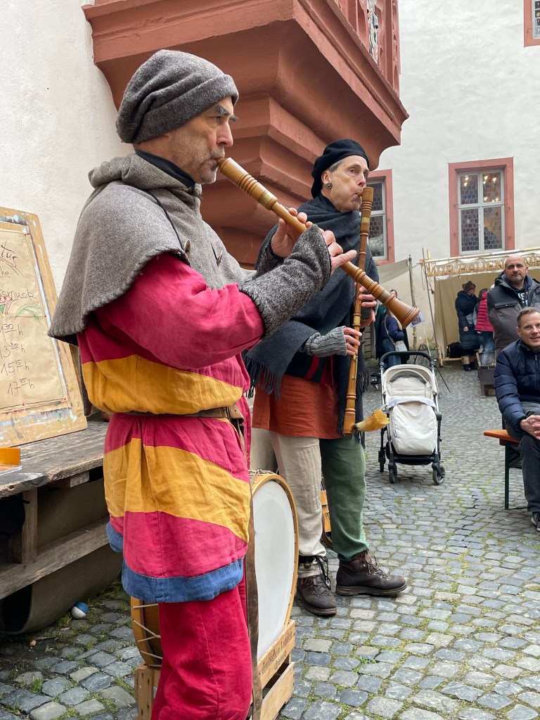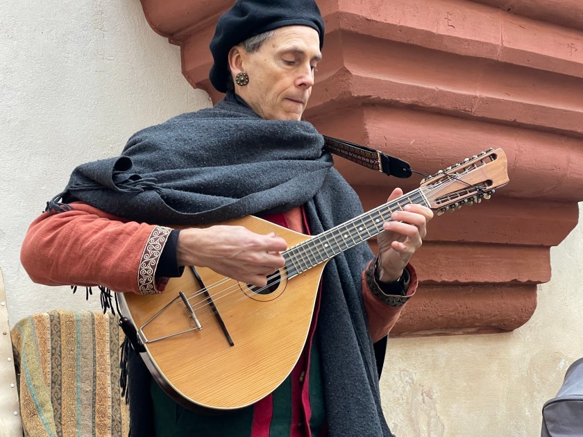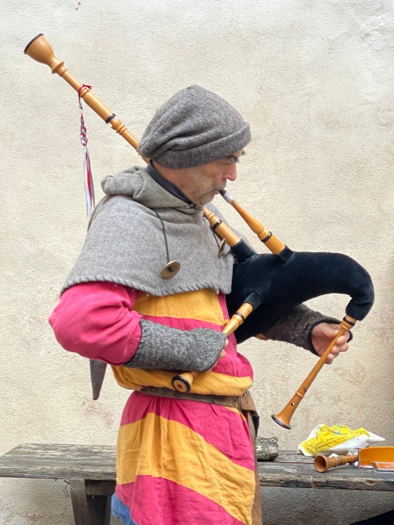 We walked through the market area below the castle first, then went up through the gates and into the castle grounds. There were more shops there and a courtyard with benches around some really good musicians playing medieval instruments. I LOVED the music and especially hearing Christmas carols performed with the stringed instruments, recorders, bagpipe-type thing and more.