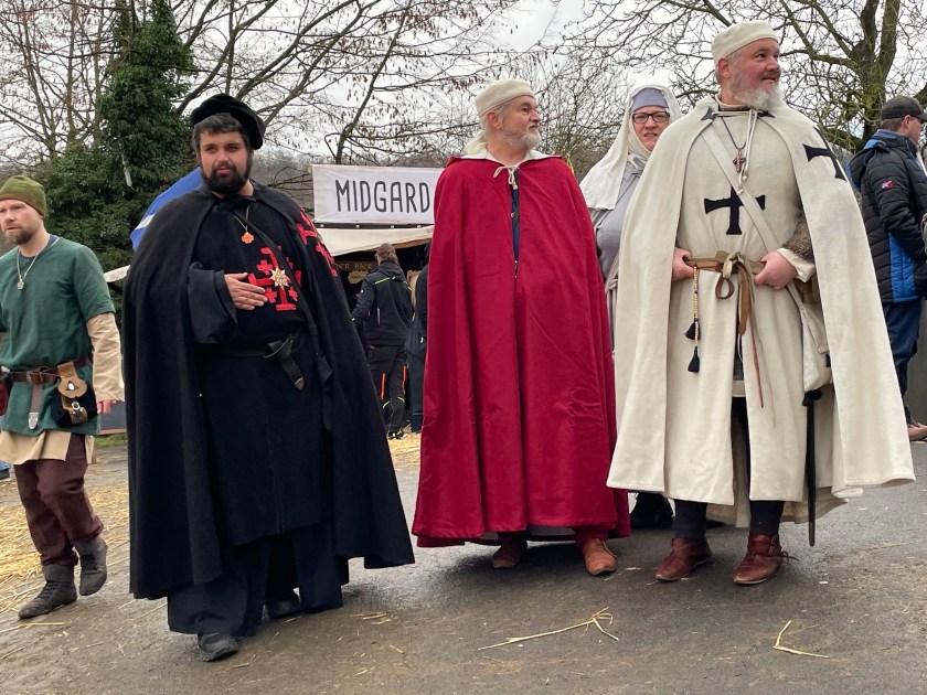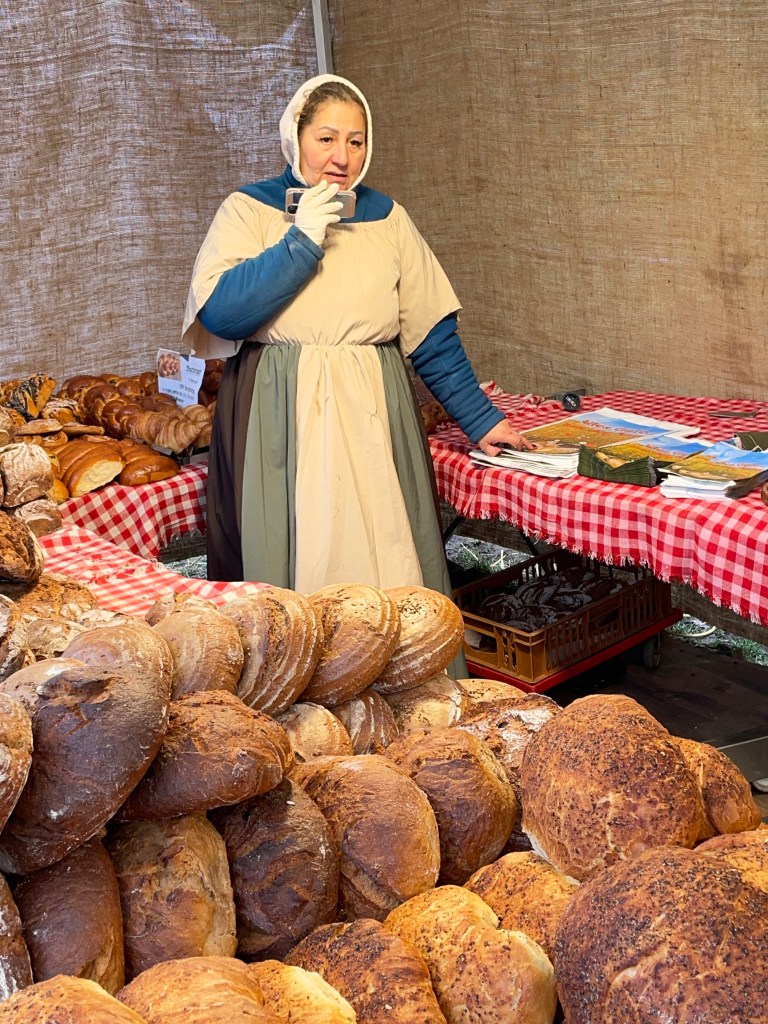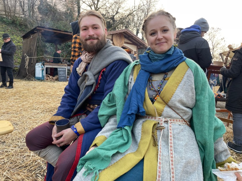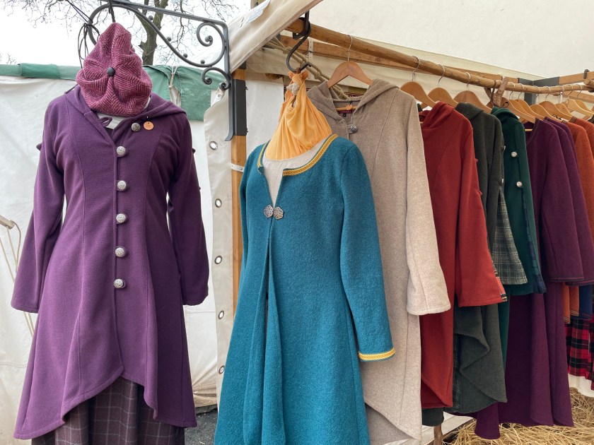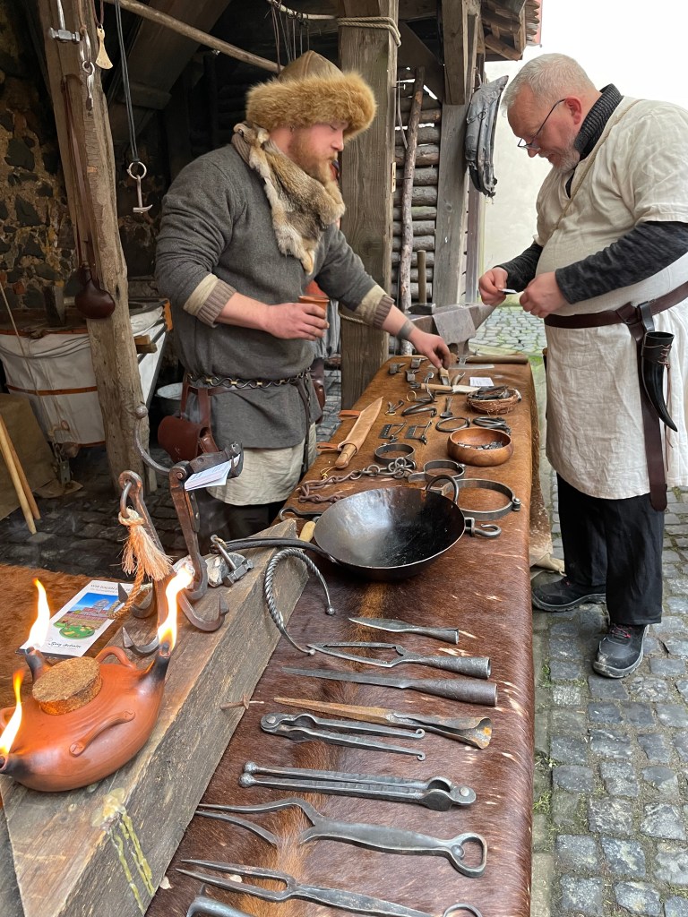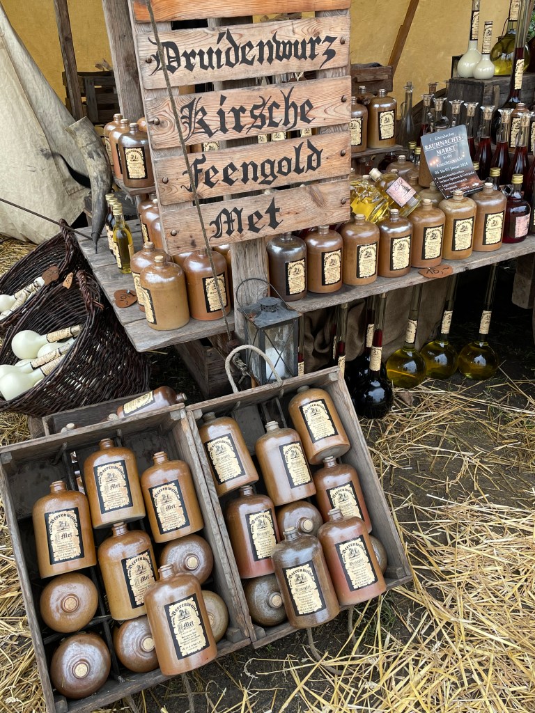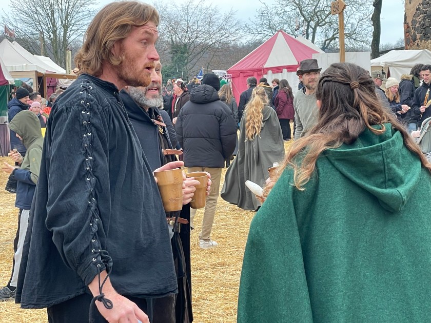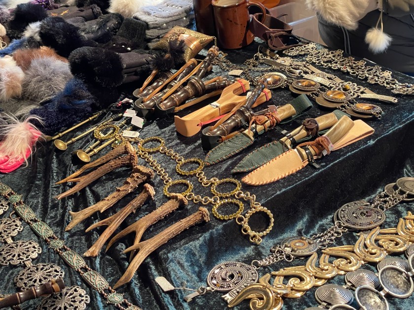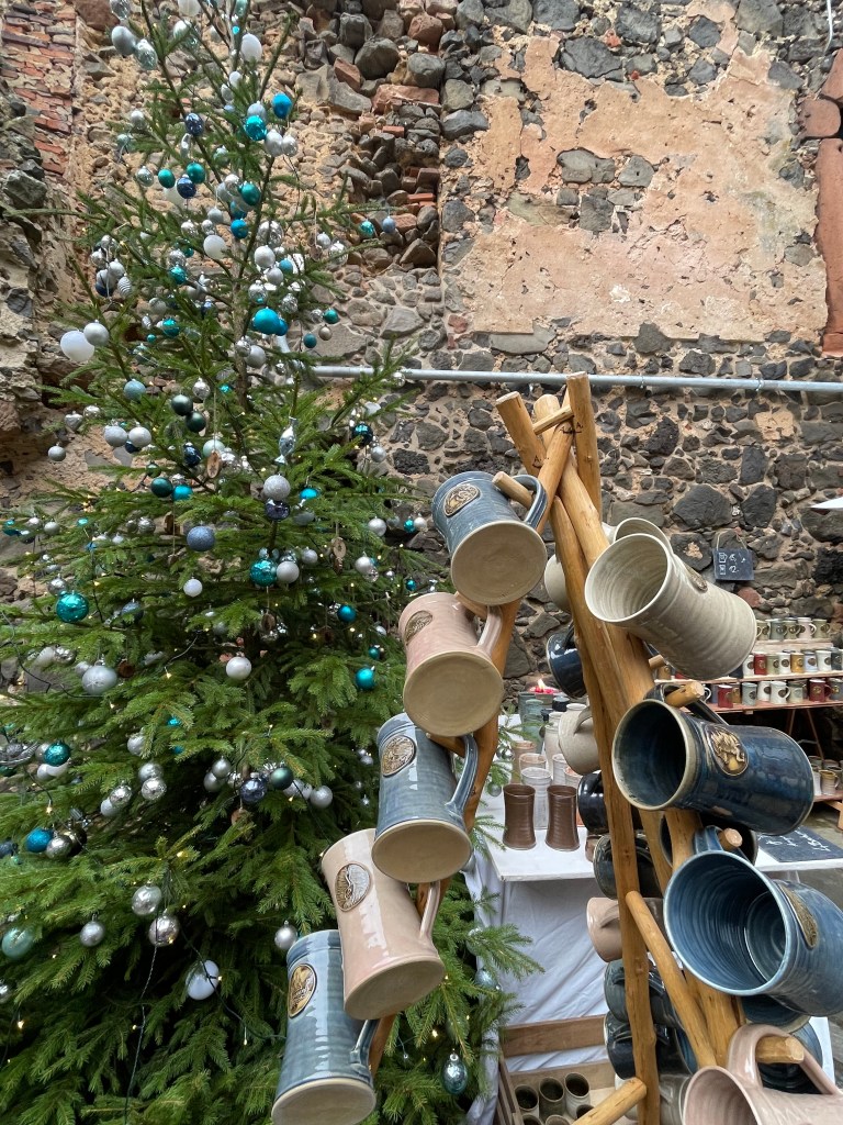 We parked on a muddy hillside of grass, then hiked up the hill to the top where the castle sits on a basalt cone, or rock outcropping. The market had a medieval theme and was in an area at the base of the castle. The ground was covered with straw so it wasn’t muddy.