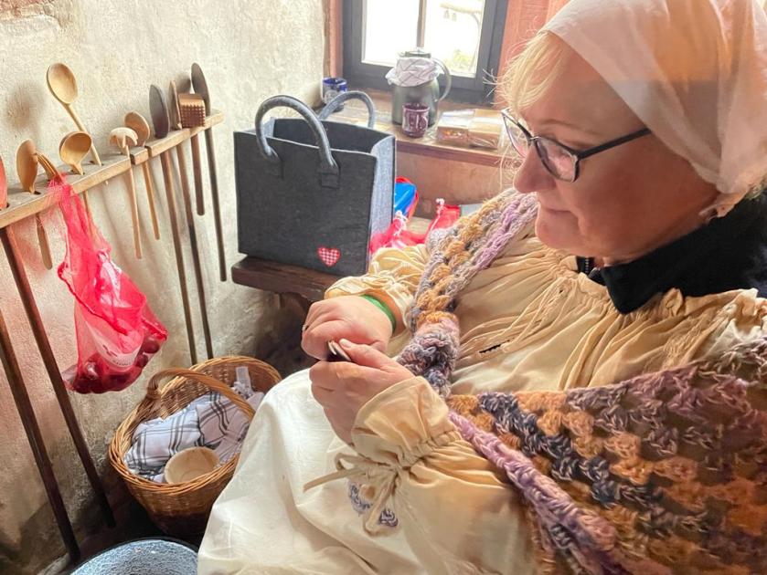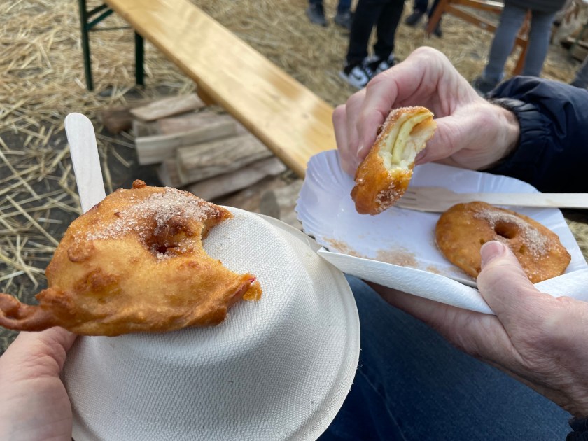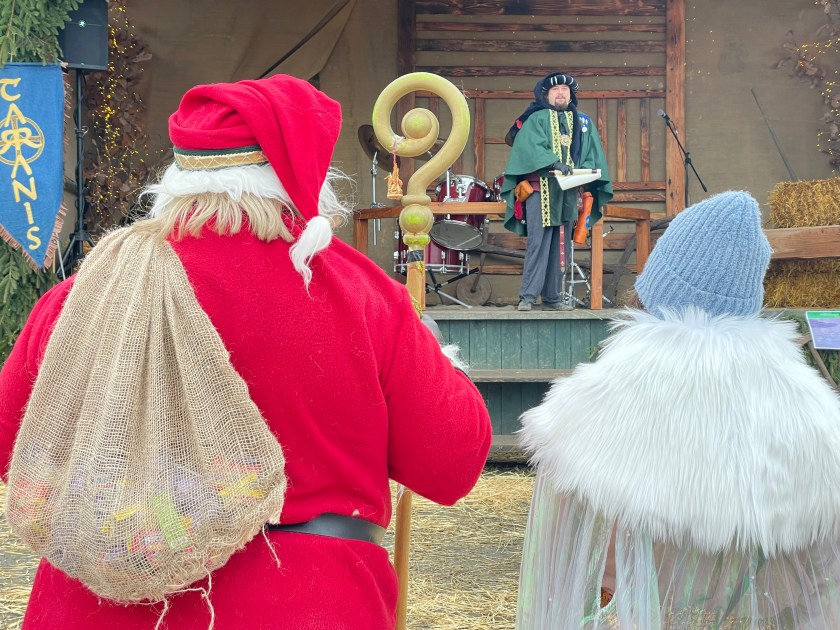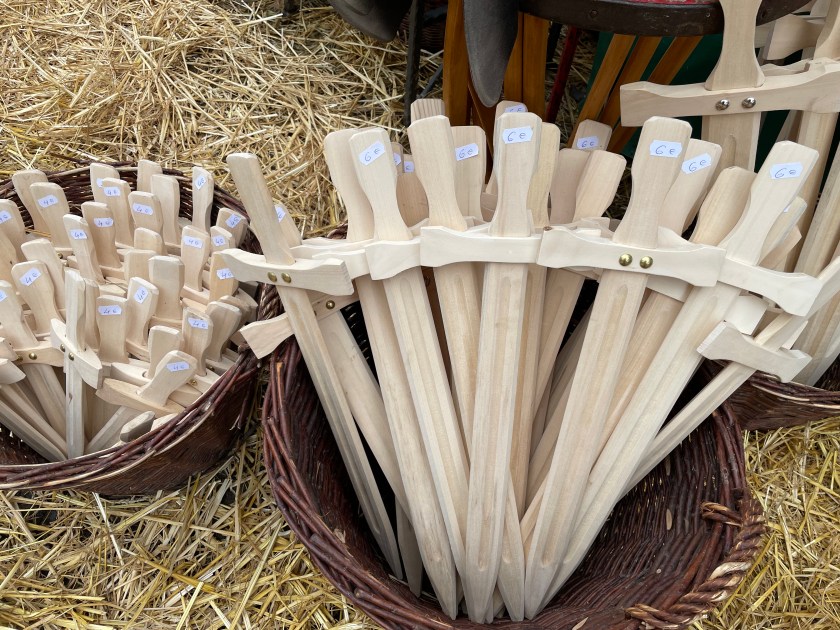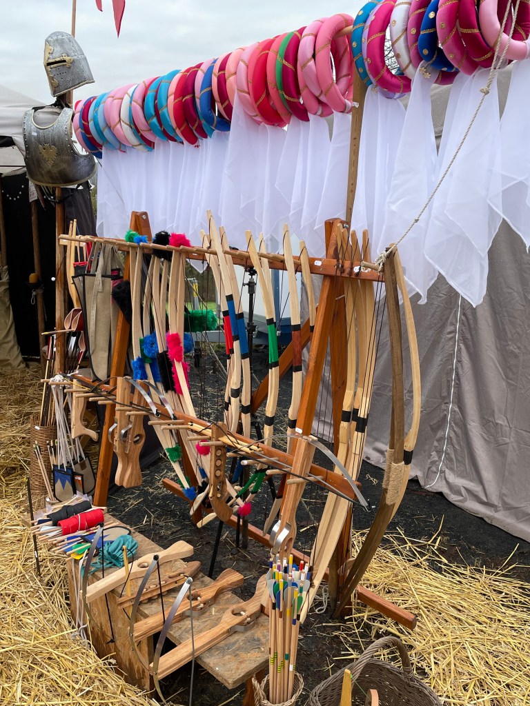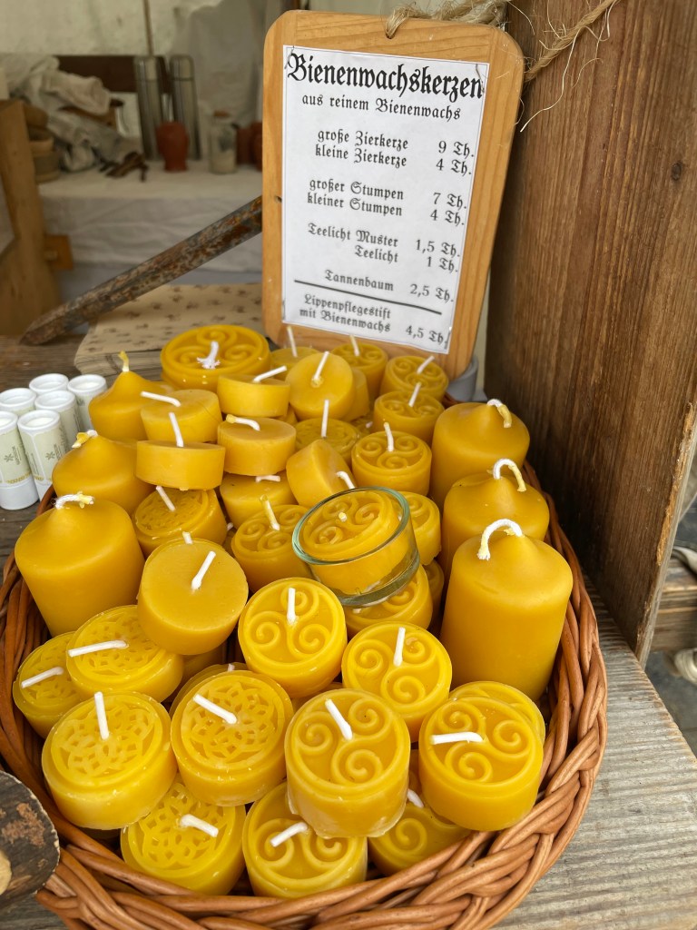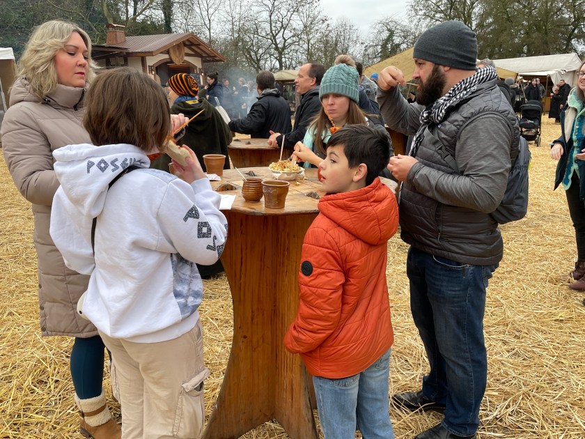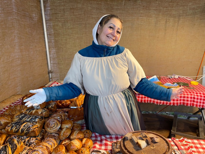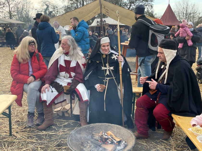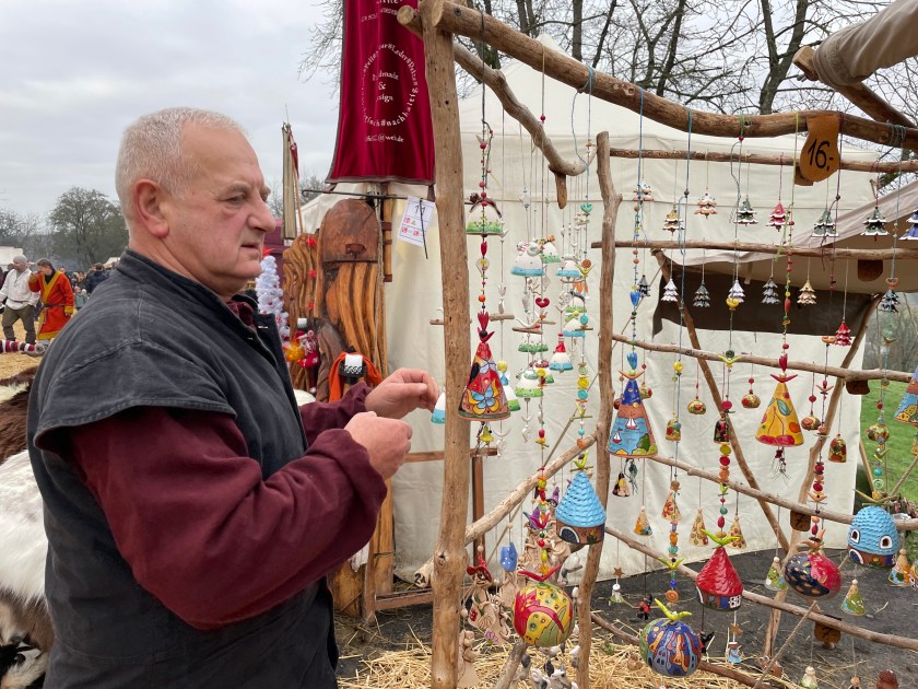 We parked on a muddy hillside of grass, then hiked up the hill to the top where the castle sits on a basalt cone, or rock outcropping. The market had a medieval theme and was in an area at the base of the castle. The ground was covered with straw so it wasn’t muddy.